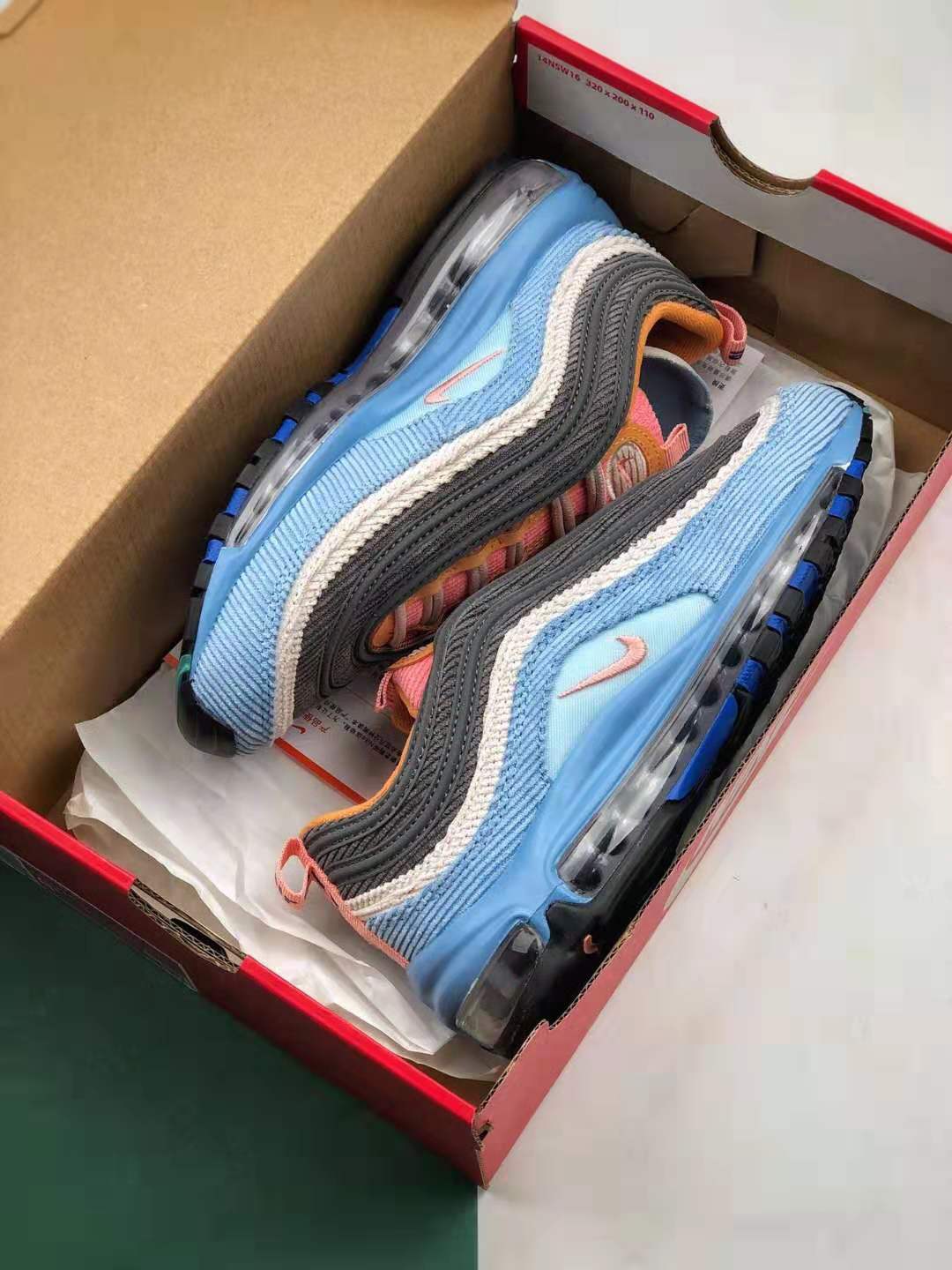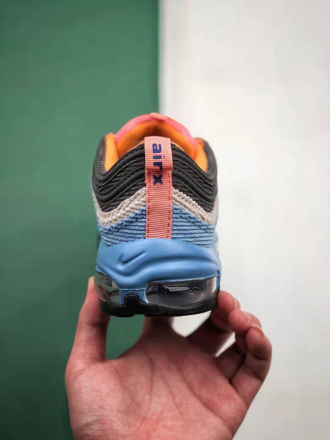 4. Versatile Style: The blue colorway of the Nike Air Max 97 ‘Corduroy Pack’ provides a stylish and versatile option for casual and sporty outfits alike. It complements various clothing choices and adds a pop of color to any ensemble.