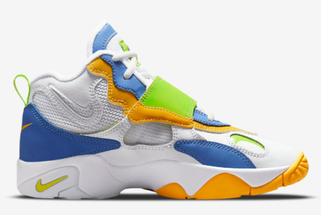 With its premium construction, Air Max cushioning, and versatile design, the Nike Air Max Speed Turf GS in White Blue Green Yellow DR9869-100 is an excellent choice for young athletes looking for style, comfort, and performance. Whether it’s for sports activities or casual wear, this shoe guarantees exceptional support and a comfortable fit.