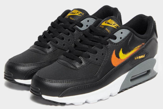 In terms of sizing, it is recommended to order your regular shoe size, as the Nike Air Max 90 Black Yellow Orange FD0657-002 runs true to size. The shoe also has a sturdy rubber outsole, offering excellent traction and grip on various surfaces.