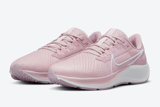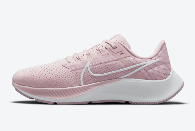 Introducing the Women’s Nike Air Zoom Pegasus 38 ‘Barely Rose’, a perfect blend of style and performance. With its stunning Champagne/Barely Rose-Arctic Pink-White colorway, these running shoes are bound to turn heads wherever you go. Designed for the modern woman, these sneakers offer superior support and comfort, making them an ideal choice for both casual wear and intense workout sessions.