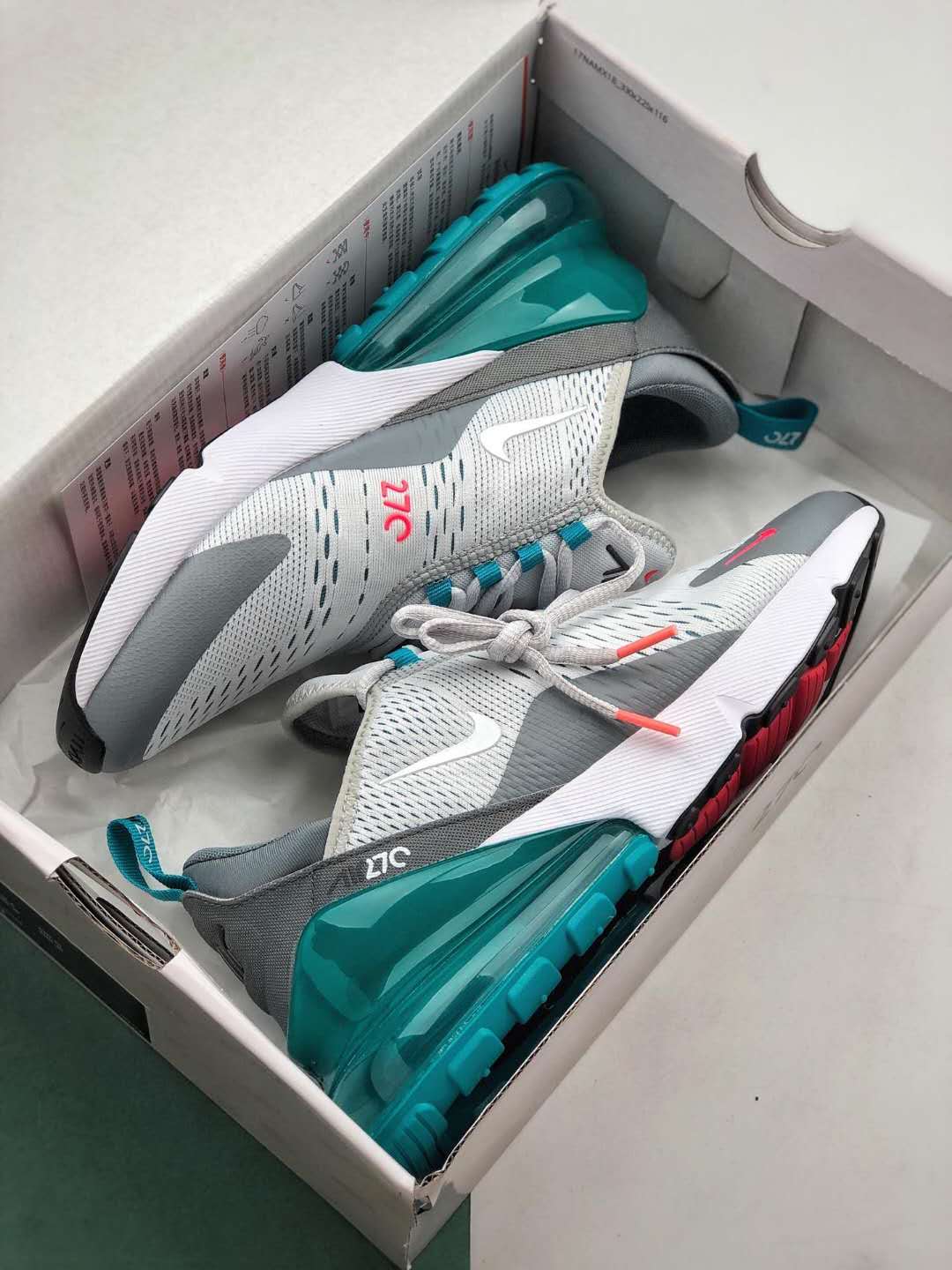 3. Durable and Flexible Outsole: The Nike Air Max 270 Wolf Grey Blue White Running Shoes boast a durable rubber outsole, providing excellent traction and grip on various surfaces. This outsole is also designed to be flexible, allowing your foot to move naturally and enhancing your overall performance.