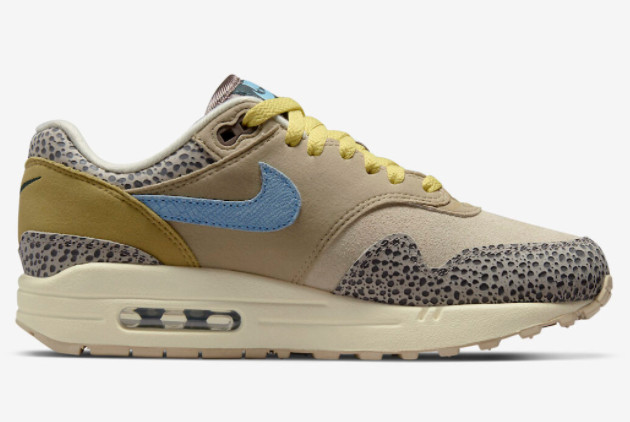 The Nike Air Max 1 ‘Safari’ Cobblestone/Worn Blue-Limestone DV3027-001 is a stunning addition to the Air Max line-up. Inspired by the iconic Nike Safari print, these sneakers exude a unique and bold style that is sure to turn heads. With a combination of premium materials and a classic silhouette, these shoes are perfect for both sneaker enthusiasts and casual wearers alike.