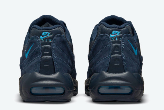 3. Iconic design: The Air Max 95 is renowned for its unique design, inspired by human anatomy. With layered panels and distinctive wavy lines, this shoe stands out from the crowd. The navy blue, white, and black color combination adds a touch of sophistication to the overall aesthetic.