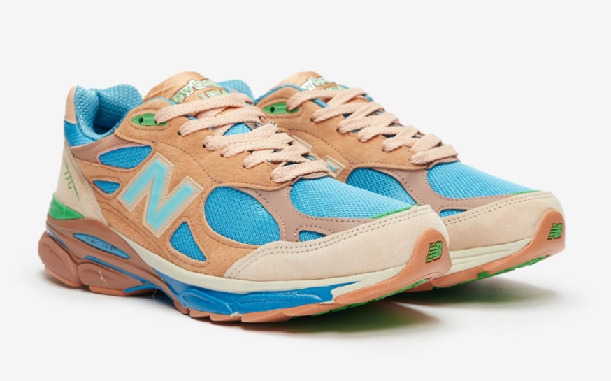 – Colorway: The New Balance Joe Freshgoods x 990v3 ‘Outside Clothes’ M990JG3 is presented in a striking combination of earthy tones, inspired by the outdoors. Rich shades of brown and green, complemented by subtle pops of orange, create a visually stunning shoe that stands out from the crowd.