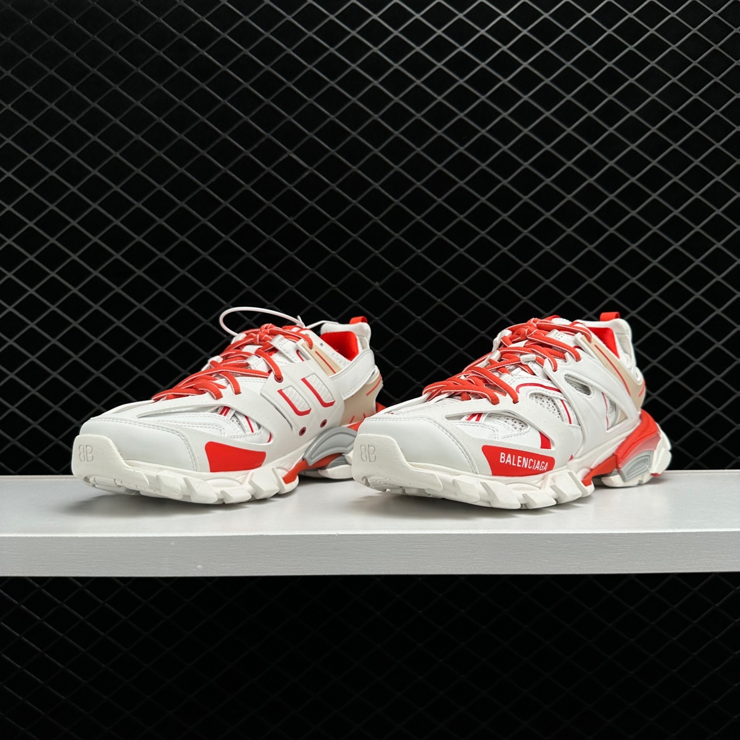 1. Stylish Design: The Balenciaga TRACK SNEAKER features a white and red color combination that adds a vibrant touch to your ensemble. The iconic Balenciaga logo on the side further enhances its appeal, making it a must-have for fashion enthusiasts.