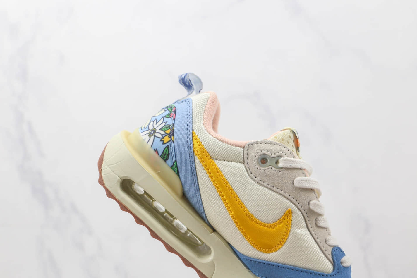 1. Premium Construction: The Nike Air Max Dawn ‘Coconut Milk University Gold’ DV1488-172 features a high-quality construction using durable materials. The upper is crafted from a blend of synthetic leather and textile, ensuring longevity and added breathability.