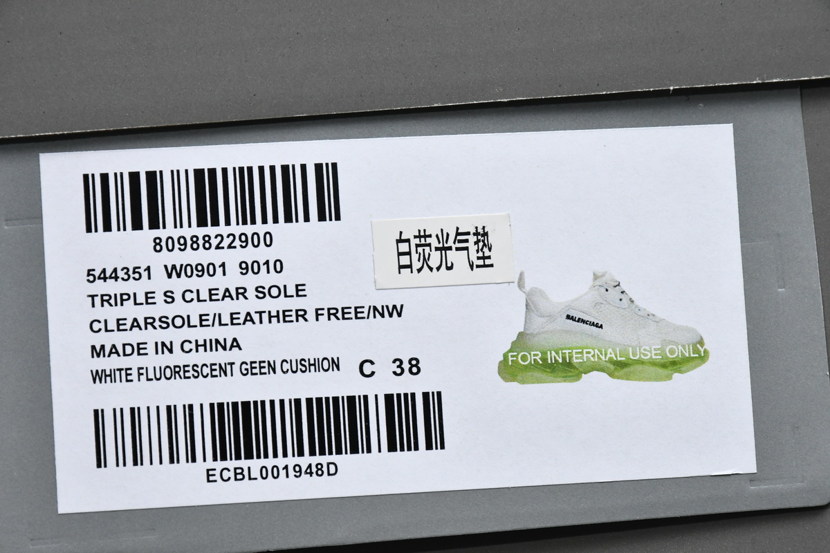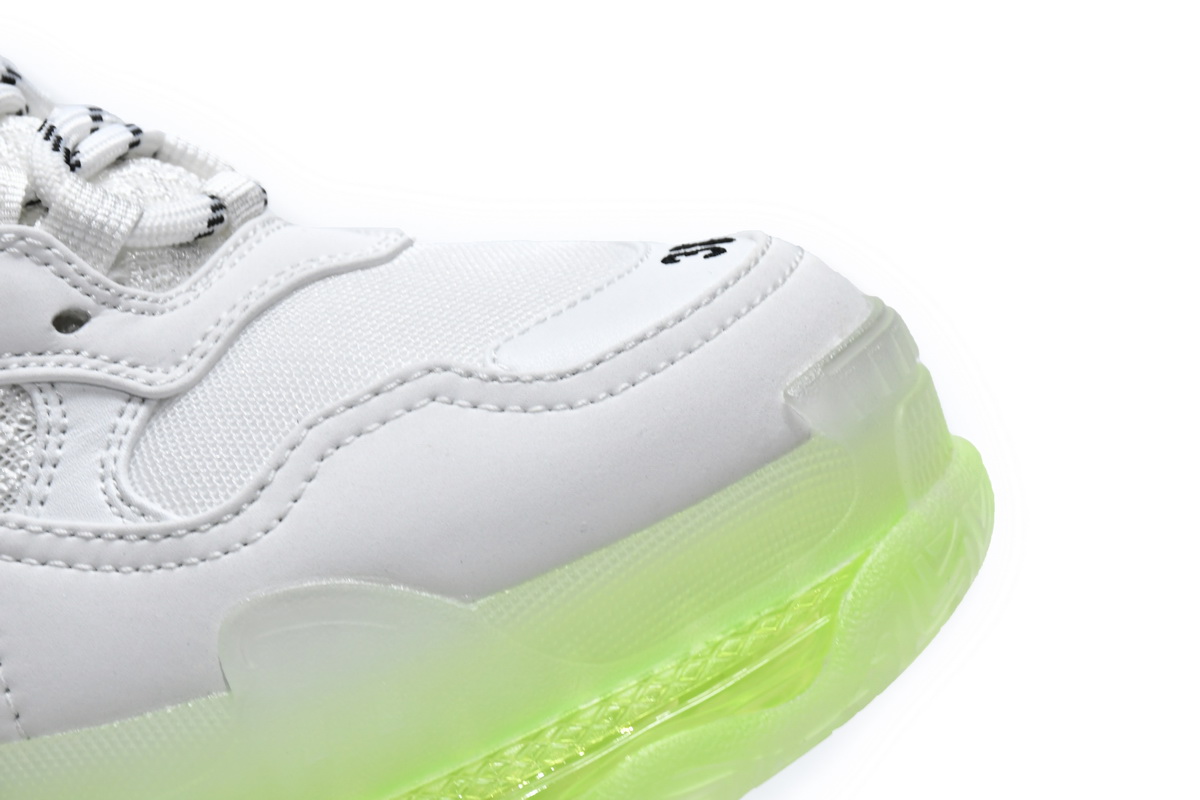 In summary, the Balenciaga Triple S Sneaker ‘Clear Sole – White Fluo Yellow’ effortlessly merges fashion and comfort. Its impeccable craftsmanship, signature triple stack sole, and bold colorway make it a must-have for fashion enthusiasts who want to stand out from the crowd. Upgrade your sneaker collection with this iconic pair today.