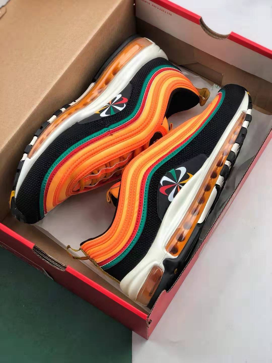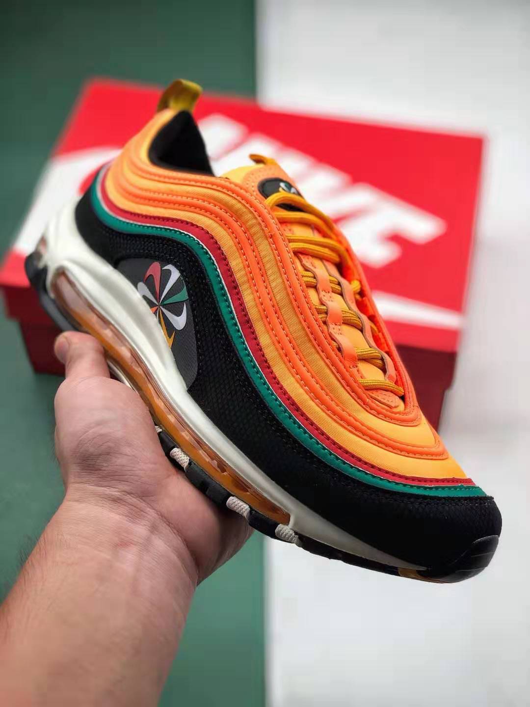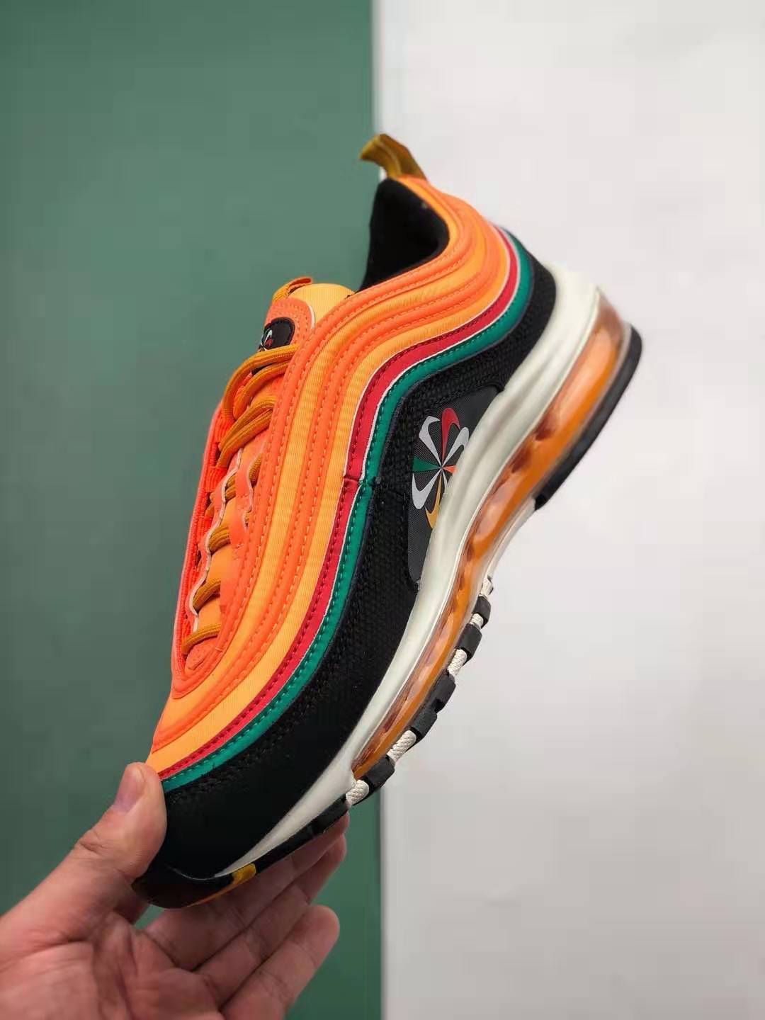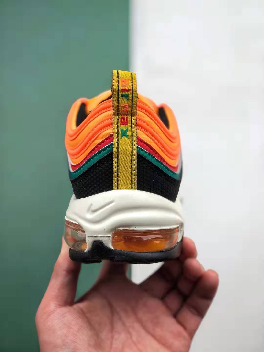 1. Vibrant Colorway: The Nike Air Max 97 ‘Sunburst’ boasts a captivating color palette featuring shades of orange, yellow, and black. This unique combination gives the sneakers a dynamic and eye-catching appearance that will turn heads wherever you go.