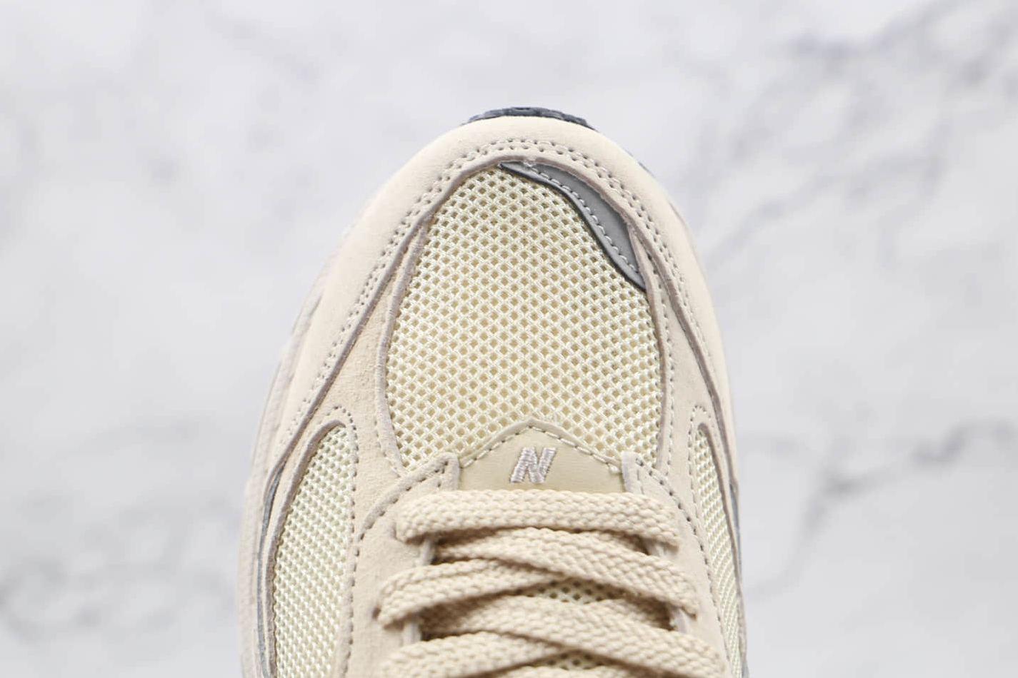 The New Balance 2002 ‘Bone’ ML2002RE boasts a versatile color palette, featuring an elegant combination of bone white, subtle grey, and accents of deep navy. This color scheme allows for easy pairing with various outfits, making it a versatile addition to any wardrobe.