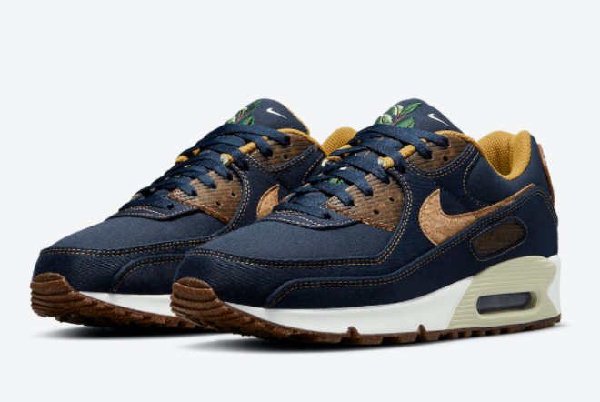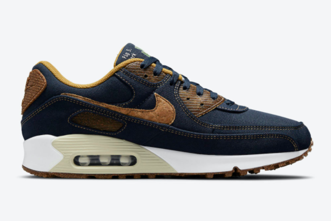 1. Premium Design: The Nike Air Max 90 ‘Cork’ showcases a striking combination of obsidian blue, wheat, coconut milk, and white colors. This color palette adds depth and character to the sneaker, making it a standout piece in any collection.