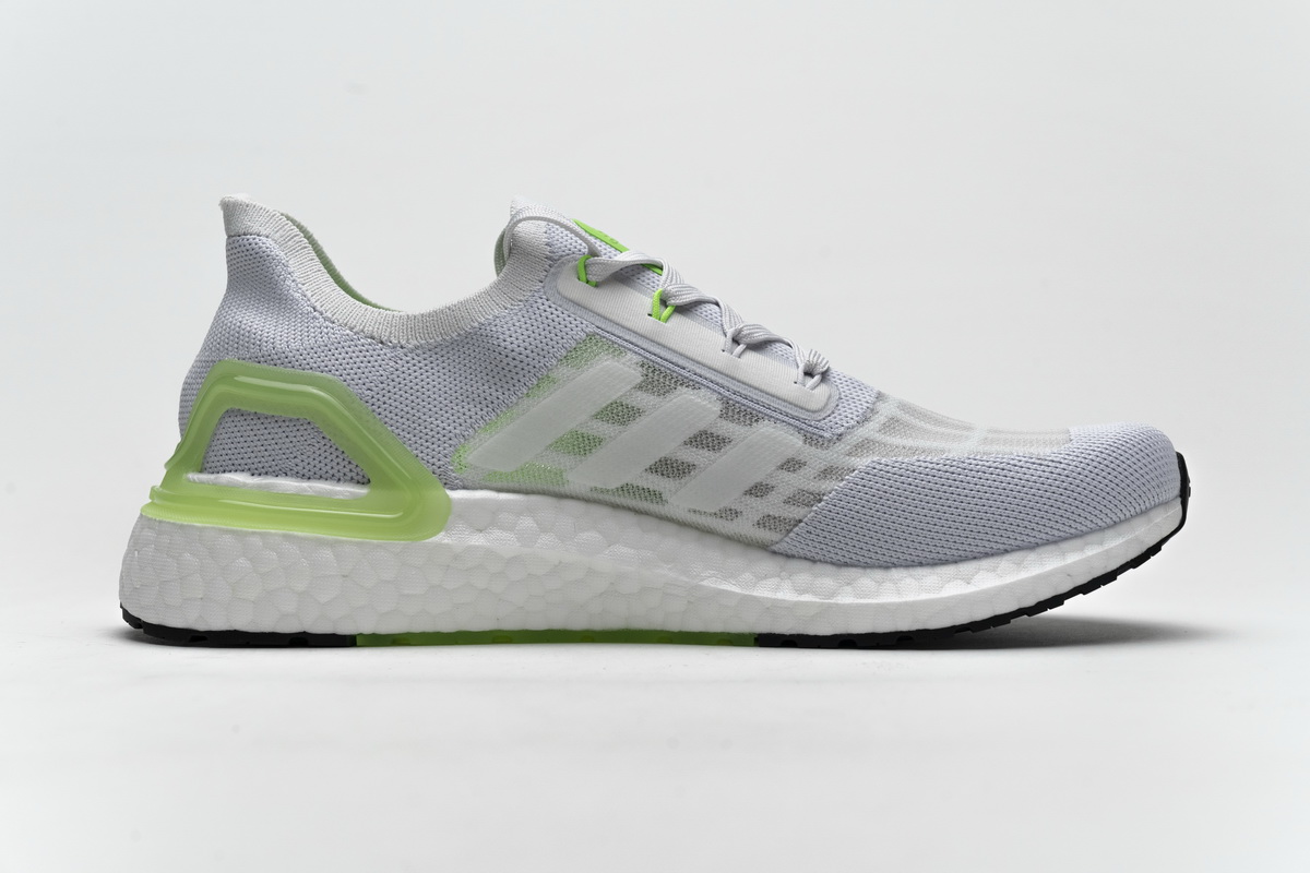 1. Breathable Upper: The Primeknit upper of the Adidas UltraBoost Summer.RDY ‘Grey Signal Green’ provides exceptional breathability, allowing air to flow freely and keep your feet cool and dry even in the hottest weather.