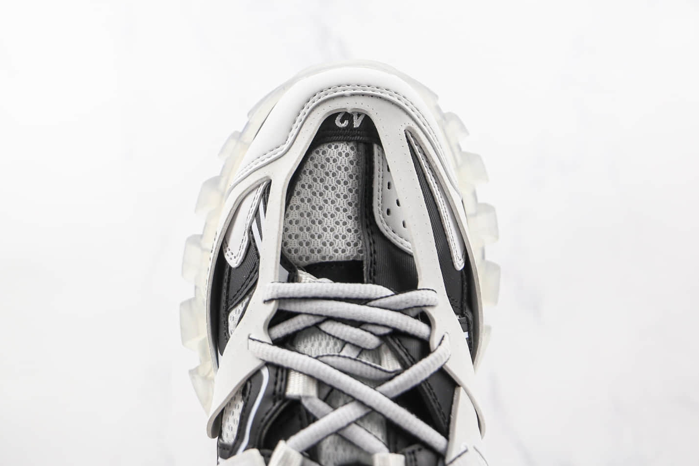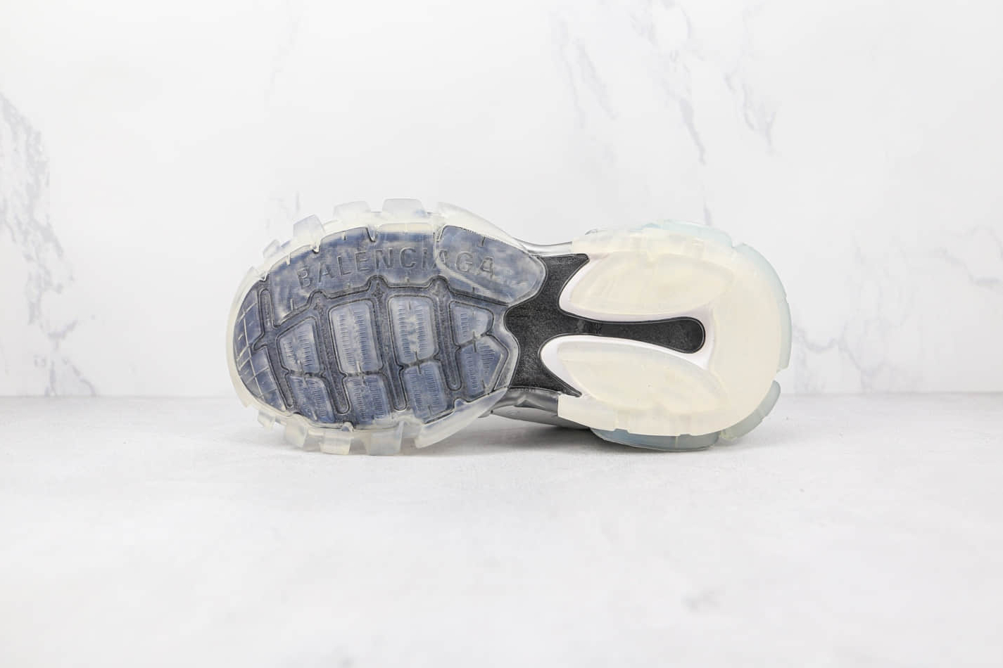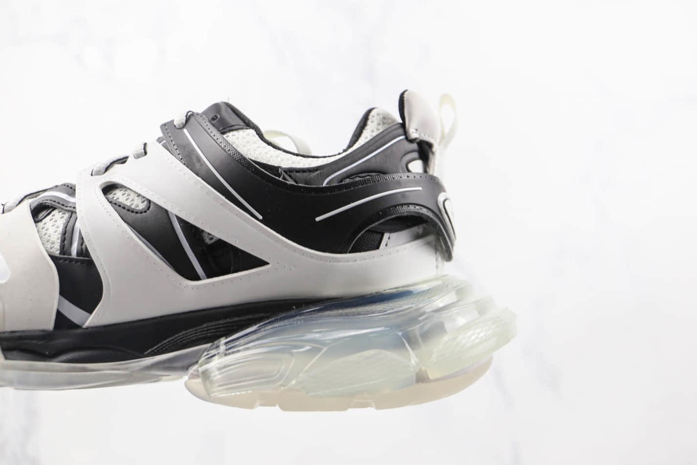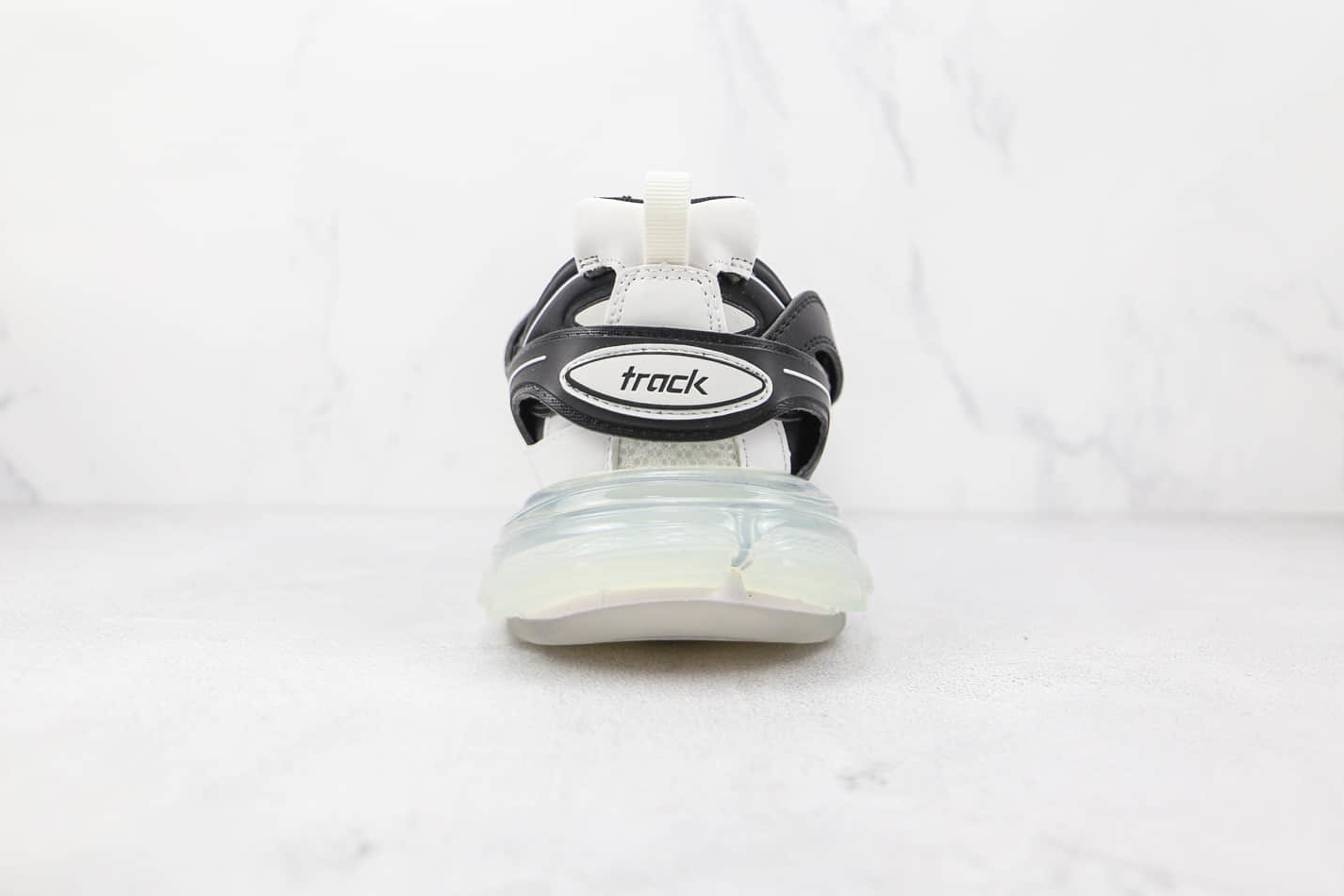 1. Cutting-Edge Design: The Balenciaga Track Sneaker features a bold and futuristic design that is sure to turn heads. With its clear sole and striking white and black colorway, it effortlessly captures attention and exudes a contemporary aesthetic.