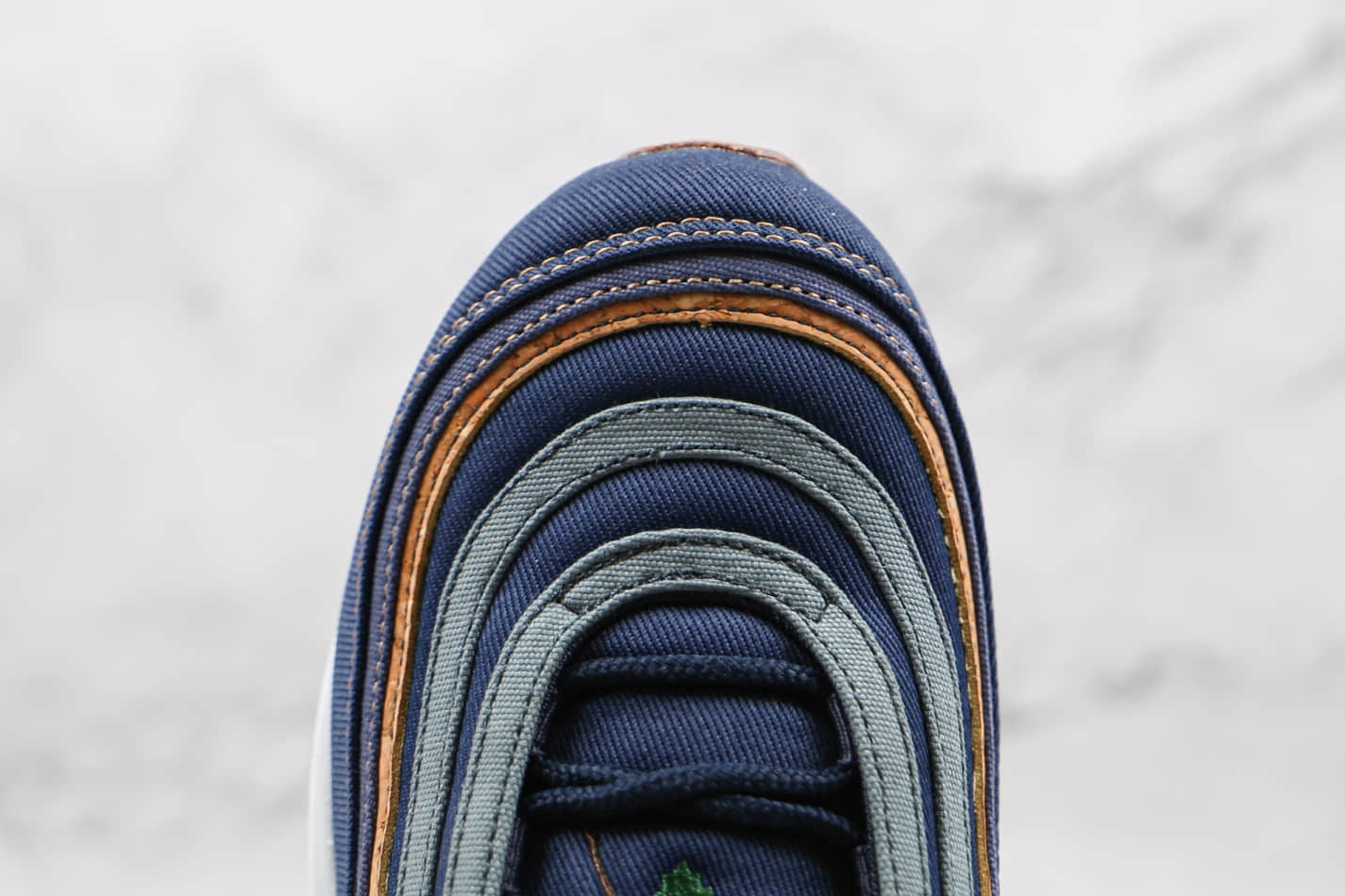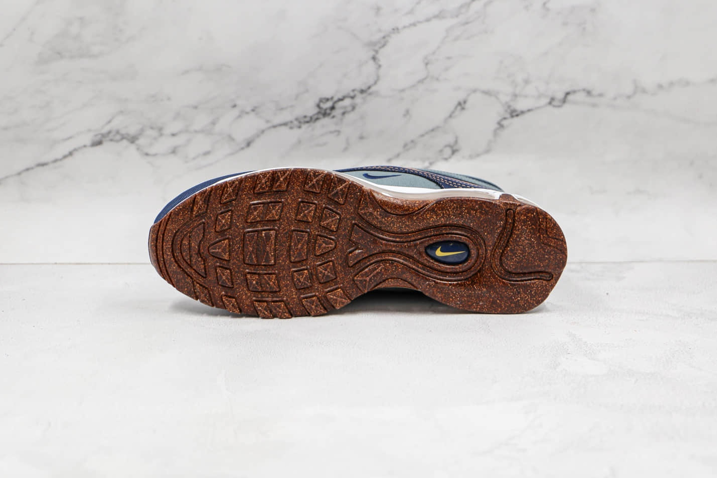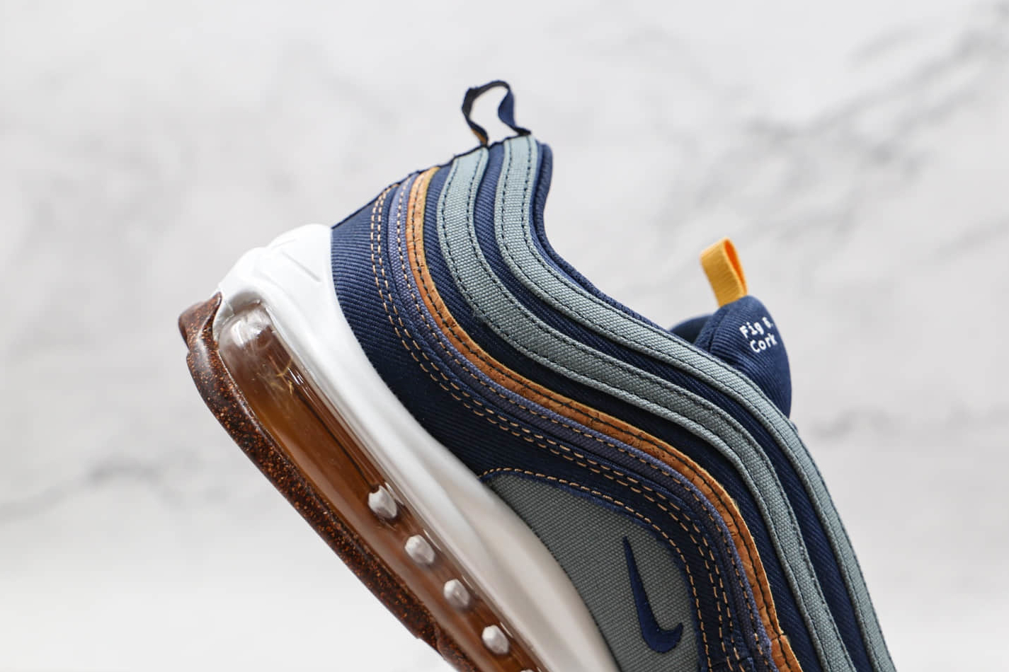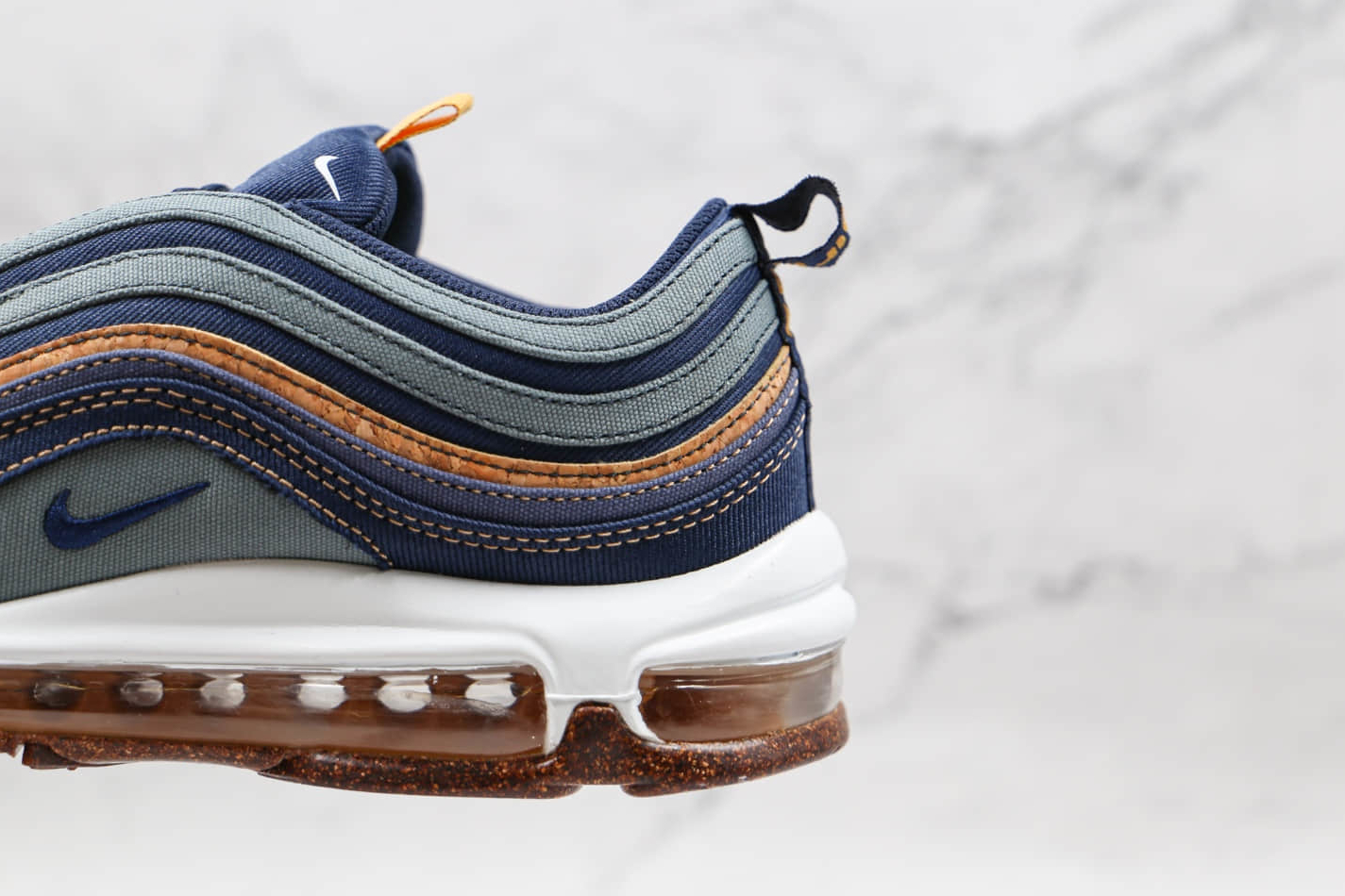 1. Cork-Inspired Upper: The most distinctive feature of this Nike Air Max 97 model is its cork-inspired upper, adding a touch of natural aesthetics to the design. This unique material brings a sense of sophistication and originality to the sneaker, setting it apart from other shoes in your collection.