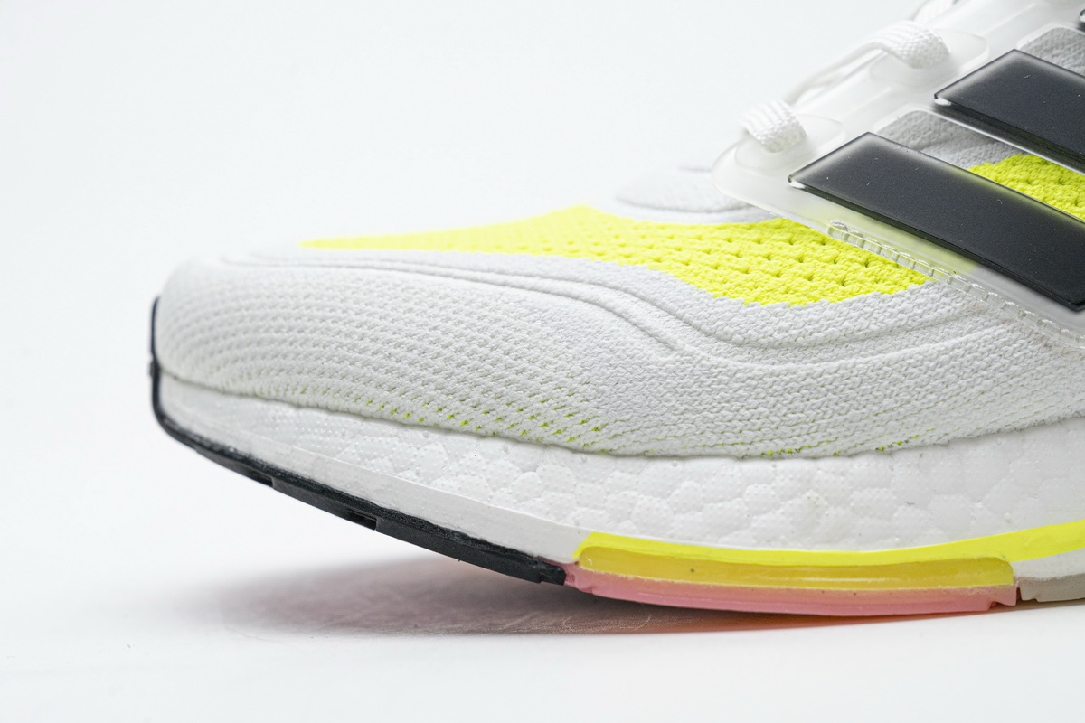 The Adidas UltraBoost 21 ‘White Solar Yellow’ FY0377 is the perfect combination of style, comfort, and performance. Whether you’re hitting the pavement or the treadmill, these shoes are designed to enhance your running experience and help you achieve your goals. Upgrade your running gear with these high-quality and stylish shoes today!