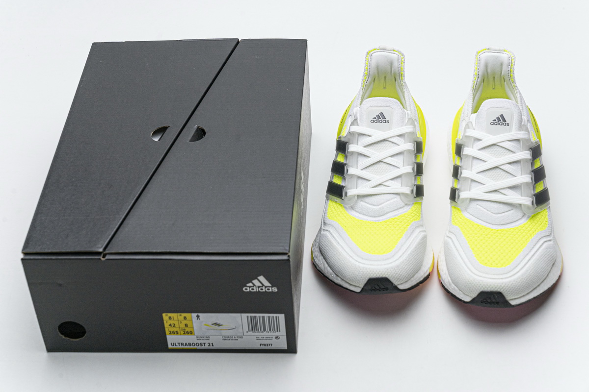 The Adidas UltraBoost 21 ‘White Solar Yellow’ FY0377 is a cutting-edge running shoe that combines style and performance like never before. This sleek and stylish shoe is designed to provide the ultimate comfort and support for your daily runs. Whether you’re a professional athlete or a casual runner, these shoes are sure to take your performance to the next level.
