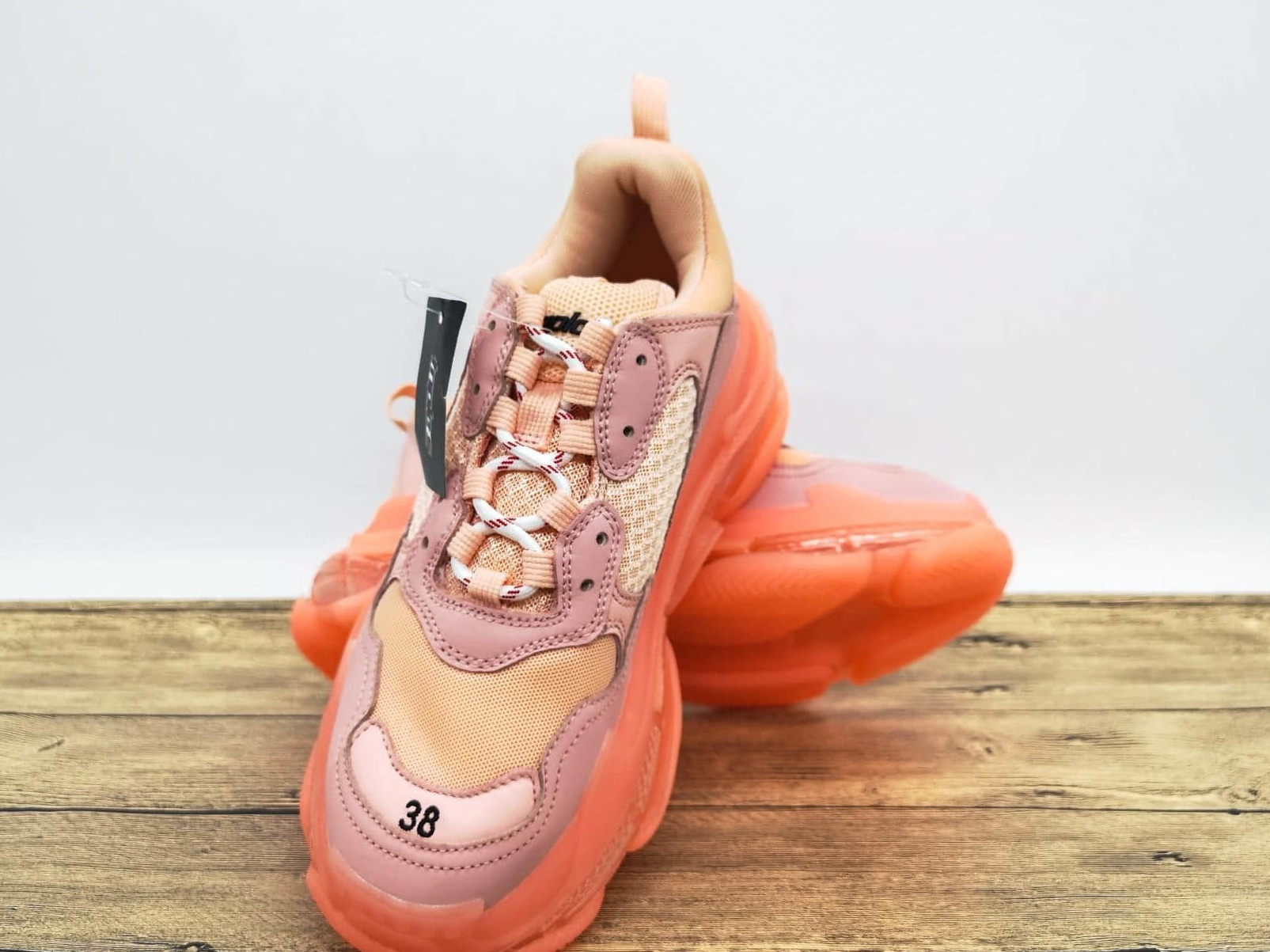 2. Bold Design: Balenciaga is renowned for pushing boundaries, and the Triple S Pink is no exception. The exaggerated proportions, multiple stacked soles, and vibrant pink color give these sneakers a distinctive and eye-catching look. Walk with confidence, knowing that you are wearing a truly unique fashion accessory.