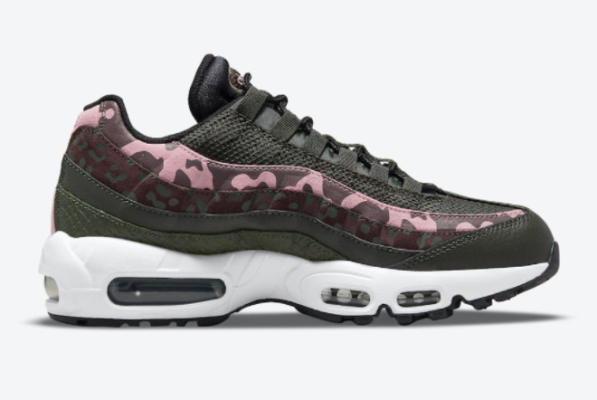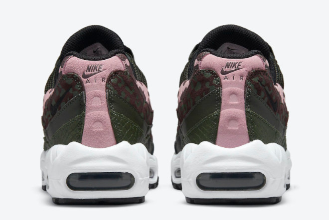 1. Camouflage Design: The Nike Air Max 95 ‘Camo’ Pink Olive DN5462-200 features a distinctive camouflage pattern, adding an element of uniqueness to your sneaker collection. The mix of pink and olive shades perfectly balances femininity with an edgy twist.