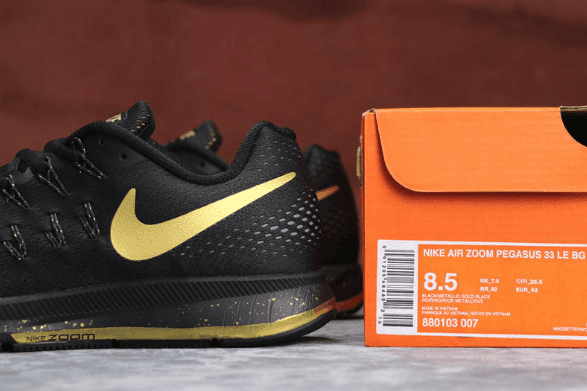 In conclusion, the Nike Air Zoom Pegasus 33 ‘Black and Gold’ 880103-007 is a high-performance running shoe that combines style and functionality. With its responsive cushioning, secure fit, and breathable construction, it offers everything you need for a comfortable and enjoyable running experience. Get ready to take your running game to the next level with this exceptional Nike shoe.