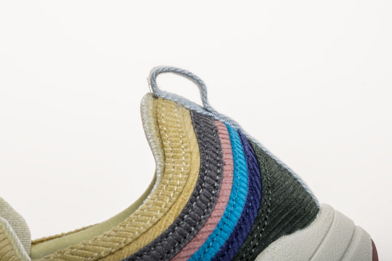 1. Vibrant Aesthetic: The Air Max 97 ‘Sean Wotherspoon’ showcases an explosion of colors, combining earthy tones with vibrant pastel shades. The distinctive corduroy upper adds a touch of texture and gives the sneaker an unrivaled vintage appeal.