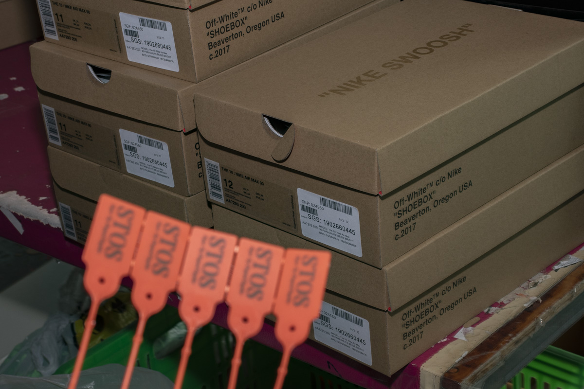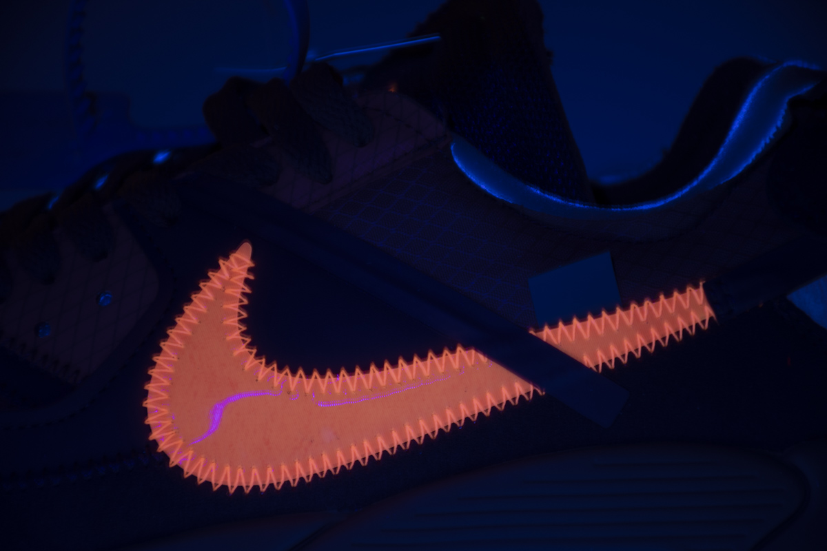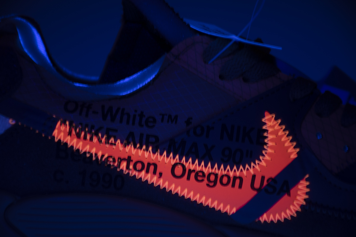 3. Unique Design Elements: This Air Max 90 features the signature deconstructed aesthetic that OFF-WHITE is known for. The shoe has exposed stitching, deconstructed panels, and an OFF-WHITE zip-tie detail, adding a touch of uniqueness to its design.