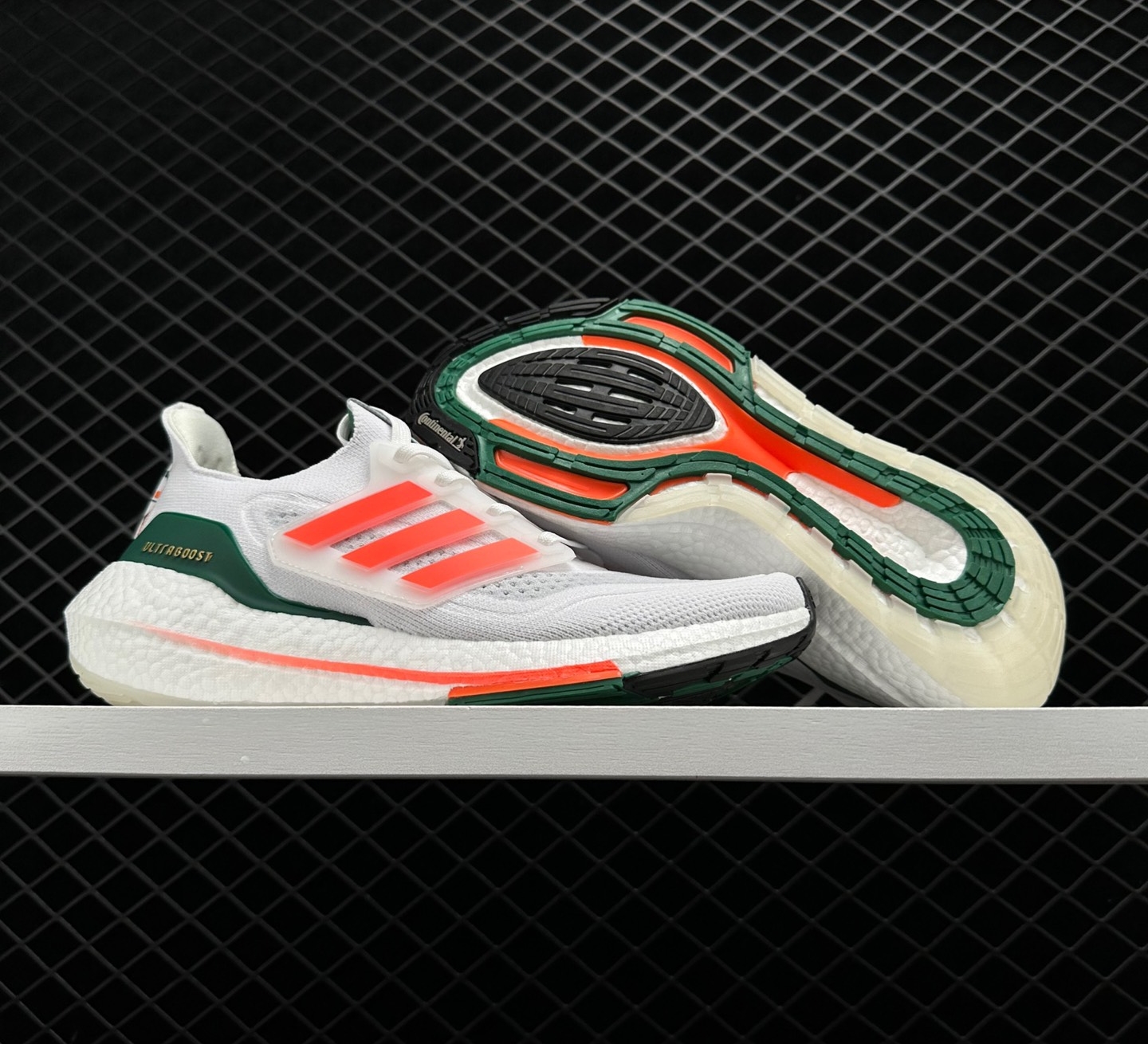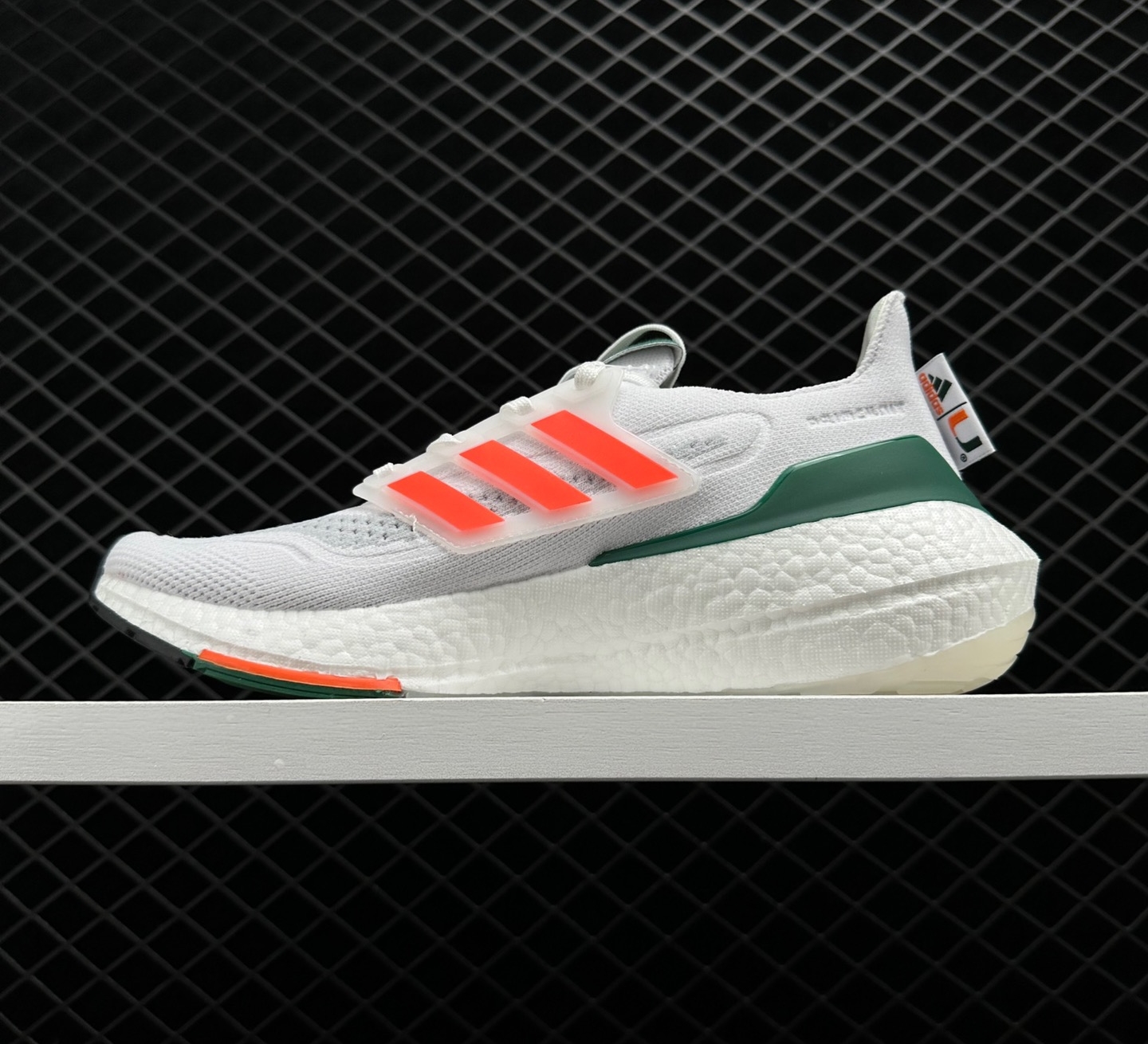 In conclusion, the Adidas UltraBoost 21 ‘NCAA Pack – Miami’ GX7966 is a fusion of cutting-edge technology, style, and performance. Elevate your running game and make heads turn with this limited edition shoe. Order yours now and experience the ultimate blend of comfort and style.