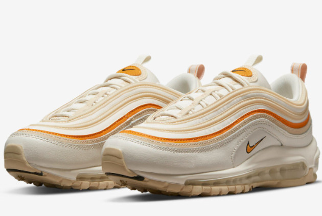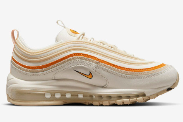 The Nike Air Max 97 ‘Creamsicle’ Creamy/Sail-Orange is a nostalgic yet modern sneaker that pays tribute to the iconic Creamsicle ice cream treat. With its refreshing color combination and sleek design, this shoe is perfect for those looking to make a stylish statement.