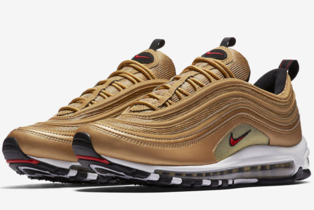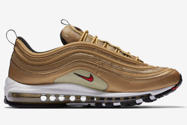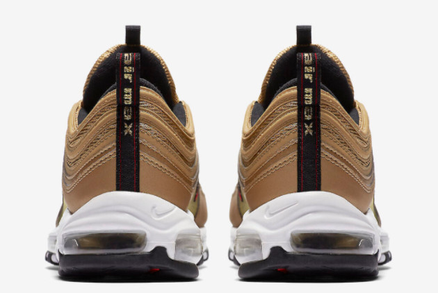 In summary, the Nike Air Max 97 ‘Gold Bullet’ Metallic Gold/Varsity Red-White-Black DM0028-700 is a must-have sneaker for fashion-forward individuals who value both style and comfort. Its eye-catching metallic gold colorway, combined with the iconic Air Max cushioning technology, make these sneakers a standout choice for any occasion. Invest in these timeless sneakers to elevate your streetwear game.