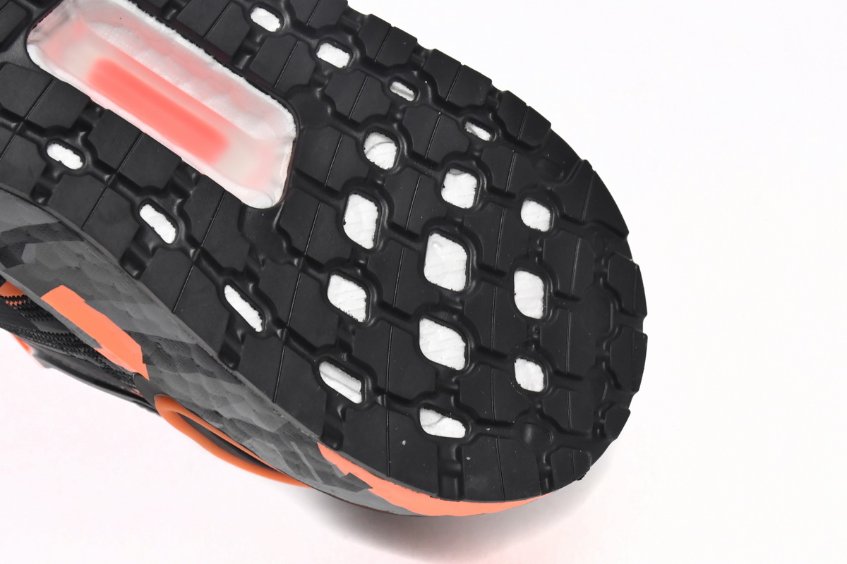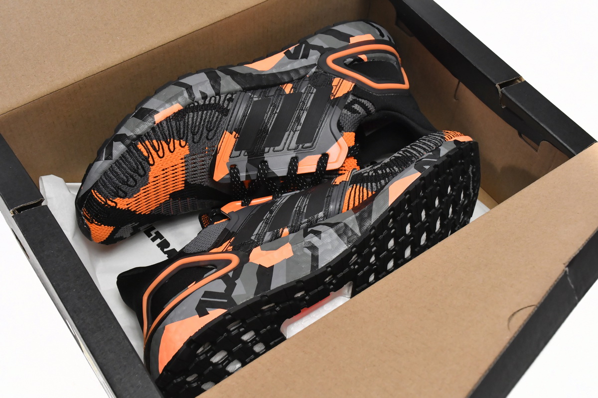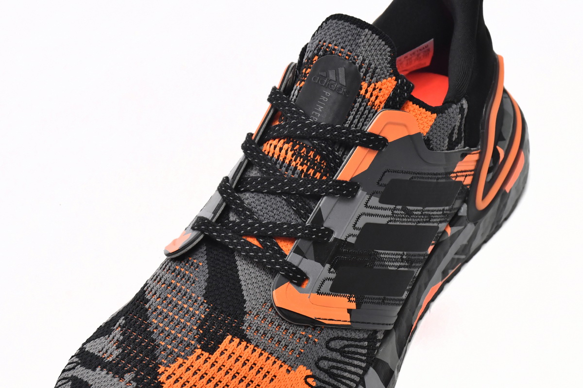 The UltraBoost 20 ‘Geometric Pack’ showcases a stunning black and signal orange colorway that is as eye-catching as it is stylish. The Primeknit upper not only provides a secure and sock-like fit but also ensures breathability, keeping your feet cool and dry during intense workouts.