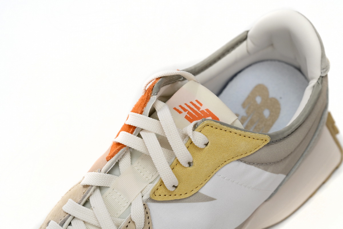 1. Retro-inspired design: The New Balance 327 ‘Light Grey WS327MS exudes a vintage aesthetic, featuring a nylon and suede upper that pays homage to classic sneaker designs from the past. This nostalgic appeal adds a timeless charm to your footwear collection.