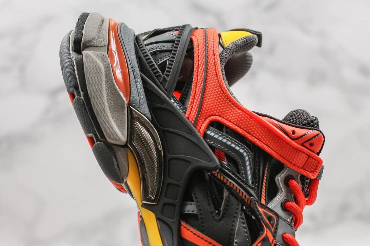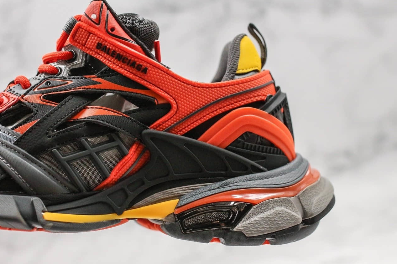 1. Unique Design: The Balenciaga Track 2 Trainer showcases a distinctive design that sets it apart from traditional sneakers. The interplay of orange and black hues creates a visually striking contrast that elevates your style to the next level.