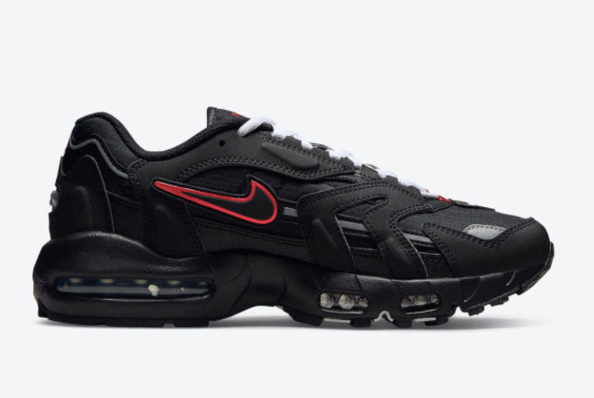 2. Sleek Design: With its streamlined silhouette and unique color combination, this sneaker adds a contemporary touch to your wardrobe. The black upper is complemented by sport red and white details, making it a standout piece.