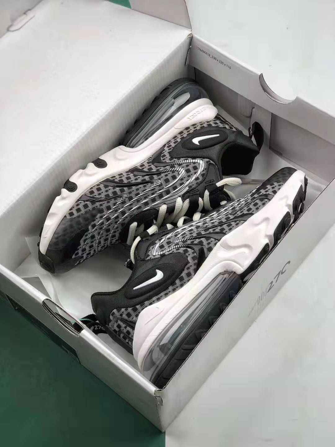 The Nike Air Max 270 React Black Light Grey White CD6870-402 is the must-have sneaker for those who value style and functionality. Step up your shoe game and experience optimal comfort and support with this iconic Nike design.