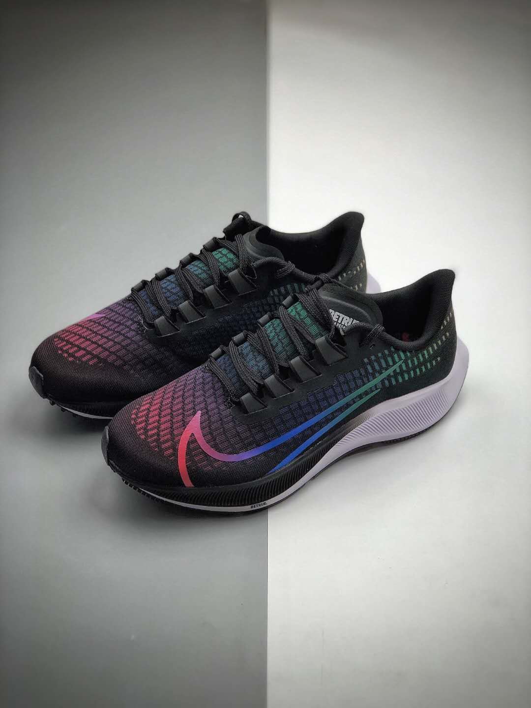 1. Stylish Design: The Nike Wmns Air Zoom Pegasus 37 ‘Be True’ CZ5923 001 boasts a captivating design with vibrant rainbow-colored accents on a sleek black base, representing inclusivity and equality. It is a visual testament to Nike’s support for LGBTQ+ rights.