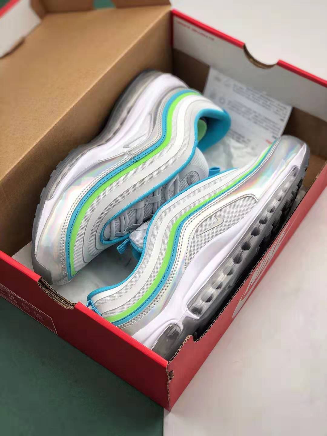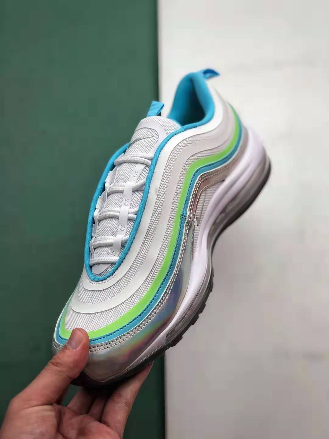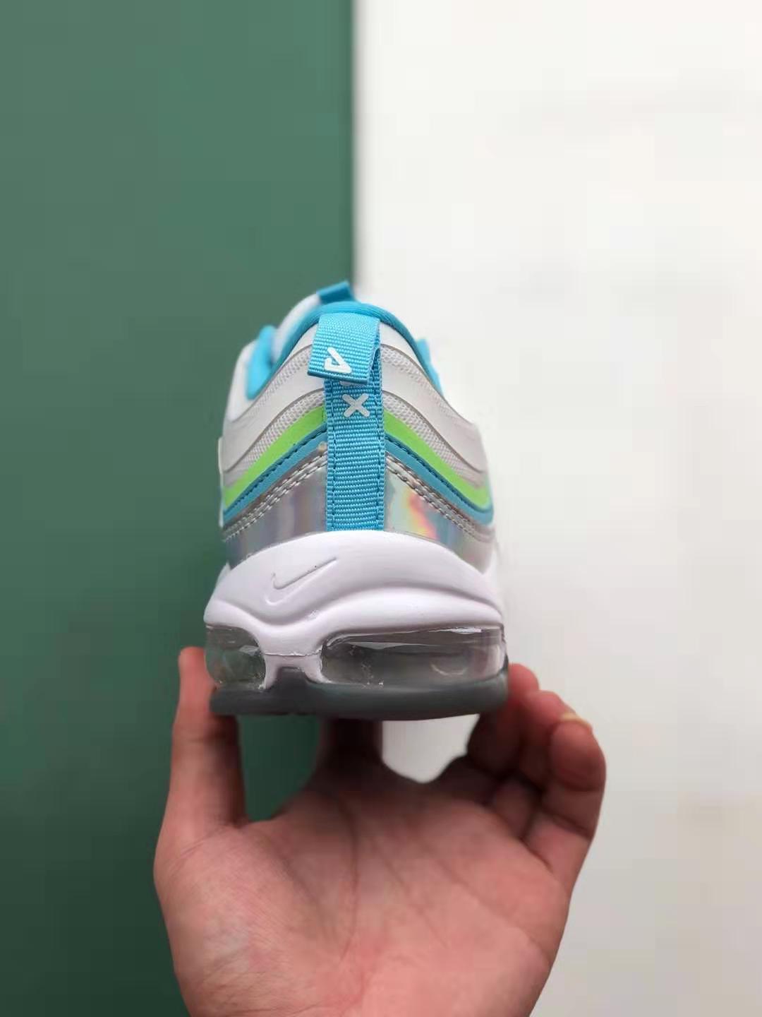 1. Iridescent Upper: The standout feature of this shoe is its eye-catching iridescent upper, which adds a touch of uniqueness to the classic Air Max 97 design. The ever-changing colors create a visually stunning effect that will surely turn heads.