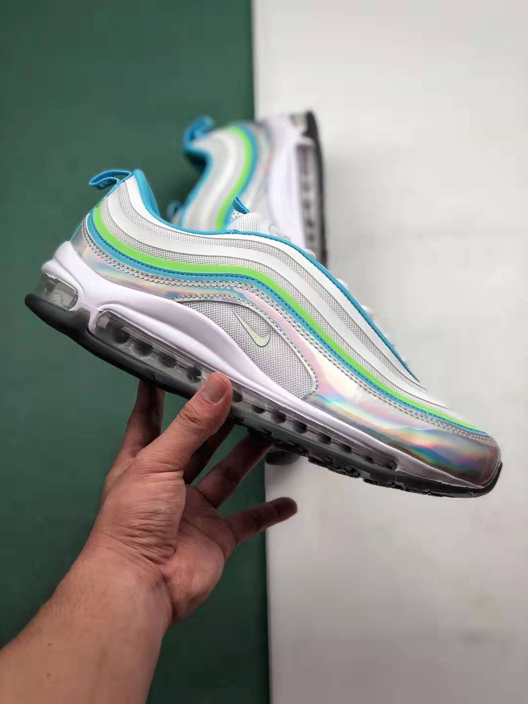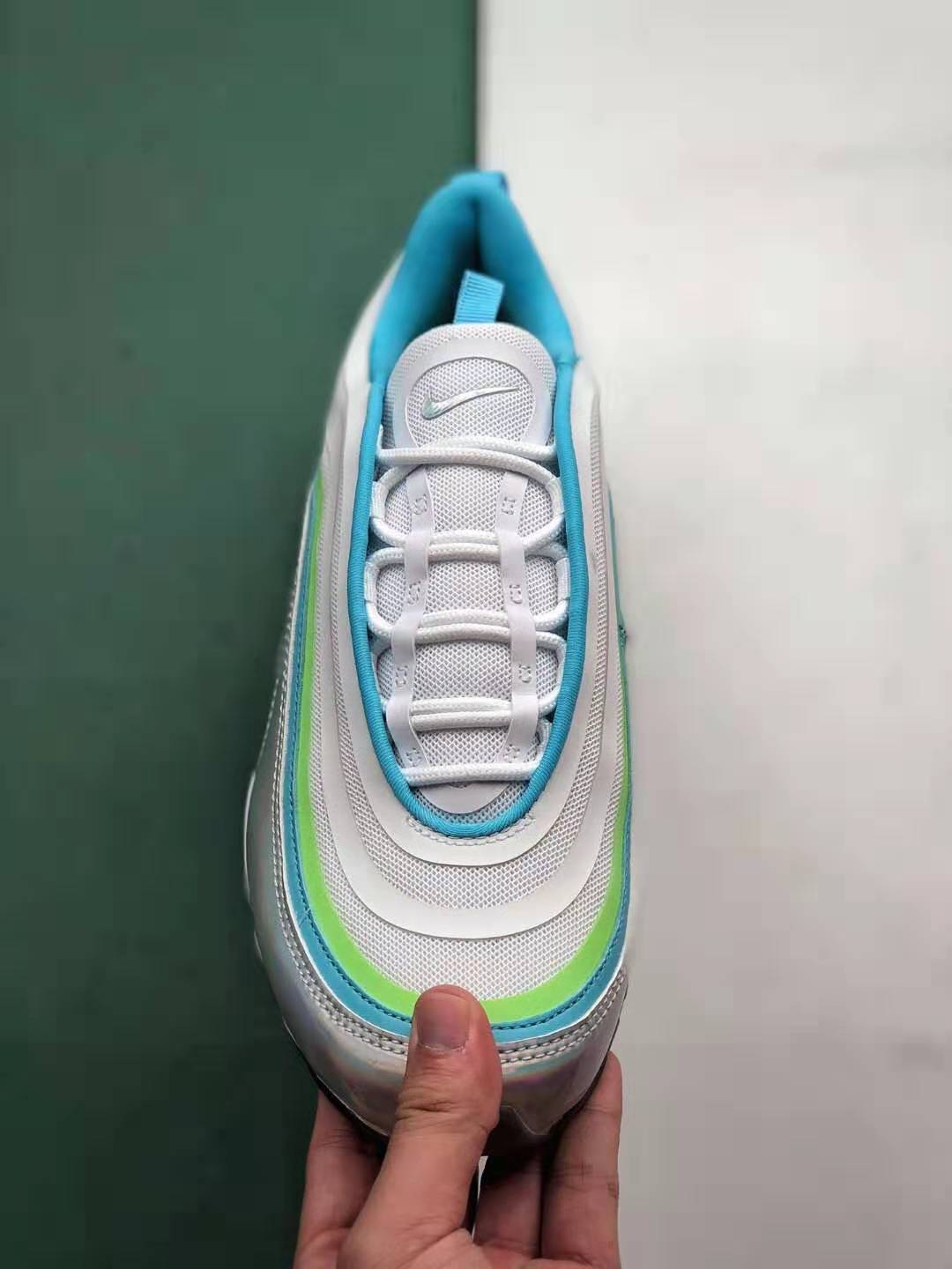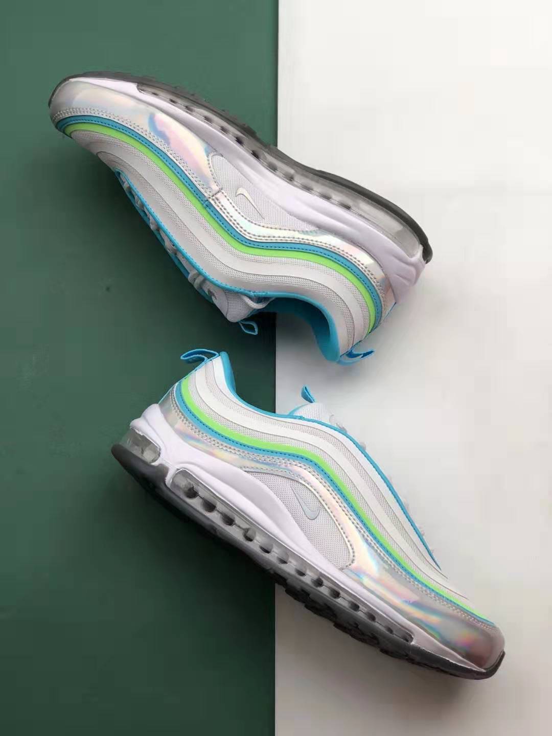 1. Iridescent Upper: The standout feature of this shoe is its eye-catching iridescent upper, which adds a touch of uniqueness to the classic Air Max 97 design. The ever-changing colors create a visually stunning effect that will surely turn heads.