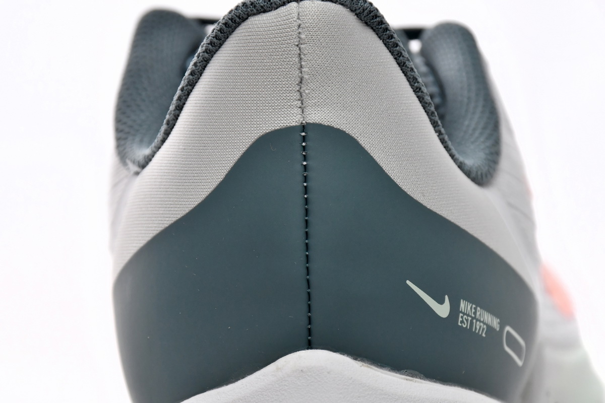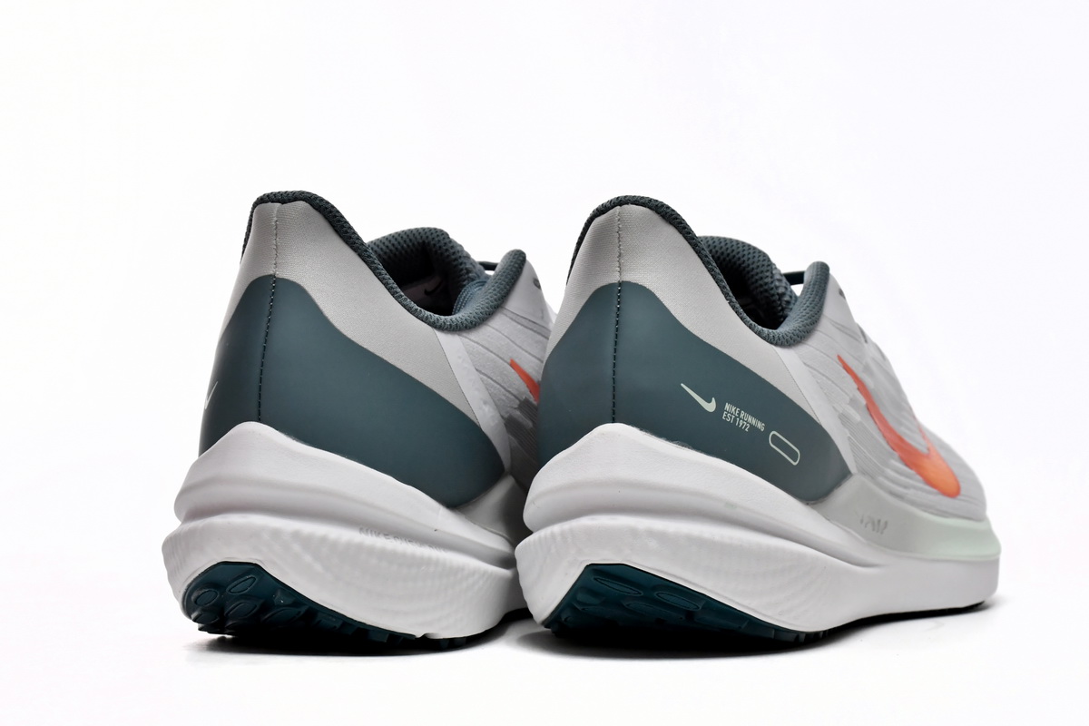 The Nike Air Winflo 9 ‘Pure Platinum Total Orange’ DD6203-005 is available in various sizes to suit every runner’s needs. The combination of the Pure Platinum and Total Orange colorway adds an eye-catching and energetic touch to your running attire. These shoes are designed for both men and women, making them suitable for anyone looking for exceptional performance footwear. The durable rubber outsole provides excellent traction on various surfaces, ensuring stability and preventing slips or slides. The shoes weigh approximately 10.4 ounces, offering a lightweight feel that won’t weigh you down during your runs.