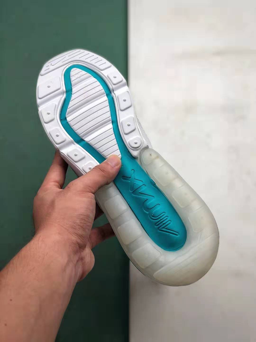 4. Responsive Midsole: The Nike Air Max 270 White Lake Blue Running Shoes feature a soft and responsive foam midsole that delivers incredible bounce-back, offering a spring-like effect during your runs. This responsive cushioning aids in propelling you forward, maximizing your overall performance.