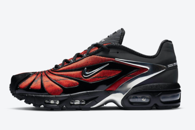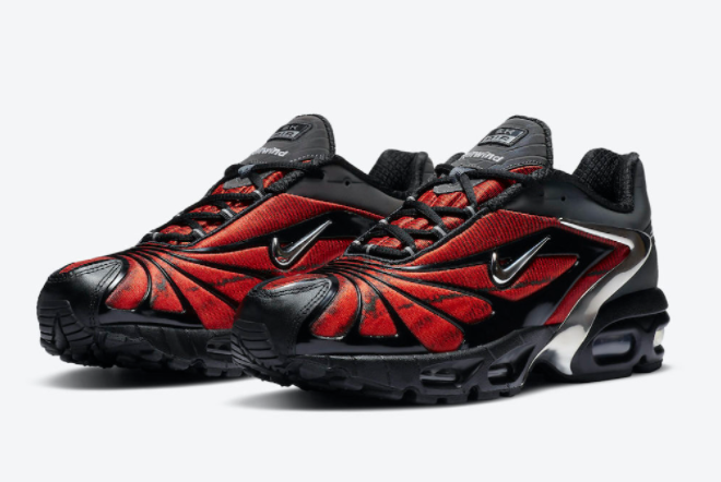 The Skepta x Nike Air Max Tailwind V ‘Bloody Chrome’ is available in men’s sizes and features the following specifications: