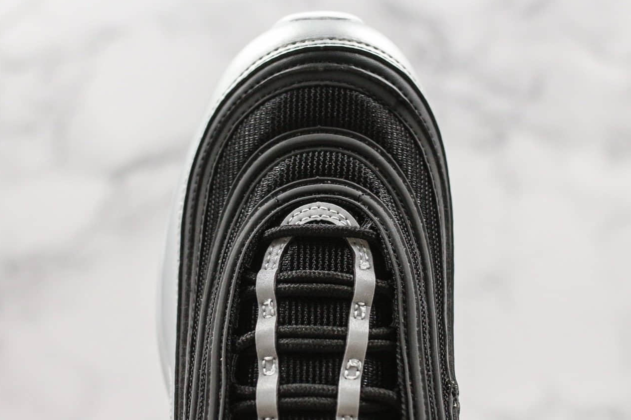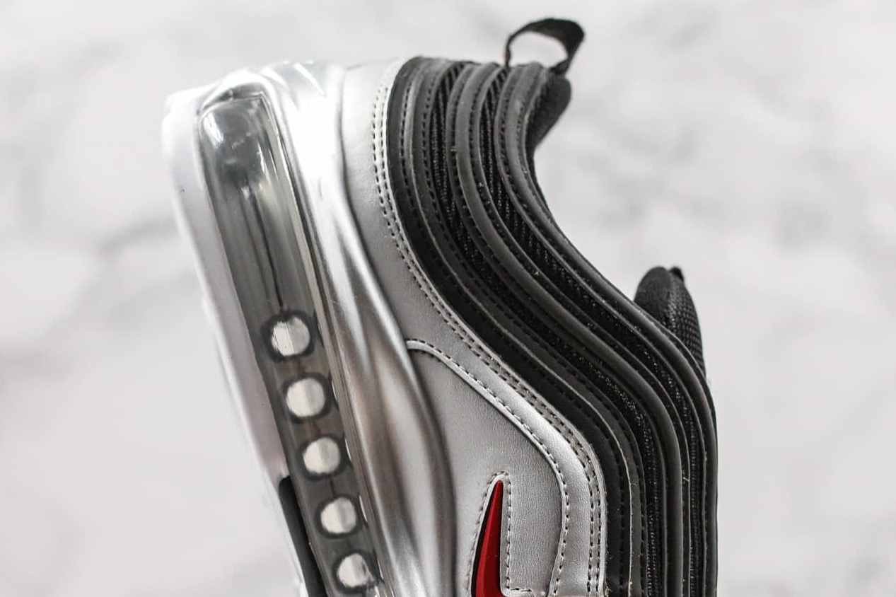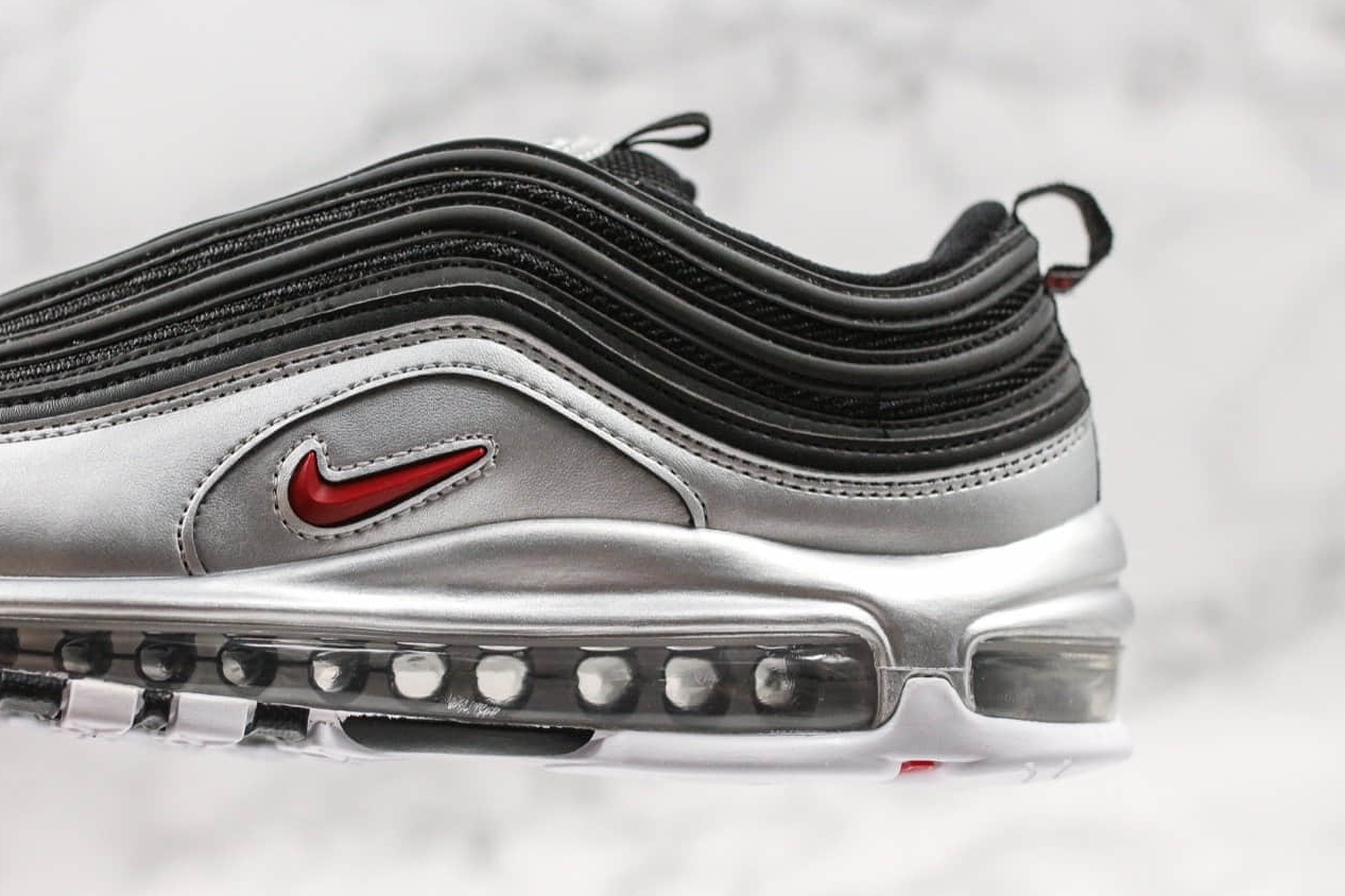 1. Metallic Silver Design: The ‘B-Sides Metallic Silver’ color scheme adds an eye-catching element to the classic Nike Air Max 97 silhouette. The metallic silver upper is sleek and fashionable, making this shoe a statement piece in any outfit.