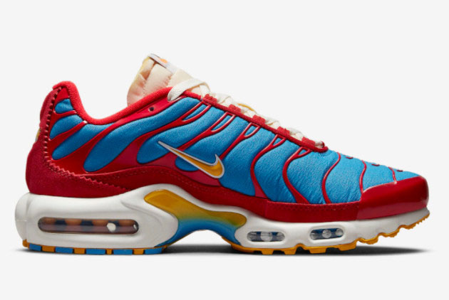 The Nike Air Max Plus SE ‘Running Club’ in University Red/Pollen-Light Photo Blue-Sail is a stylish and functional pair of running shoes that will elevate your performance. Made with high-quality materials and advanced technology, these sneakers offer both comfort and style.