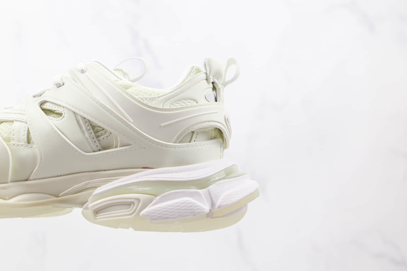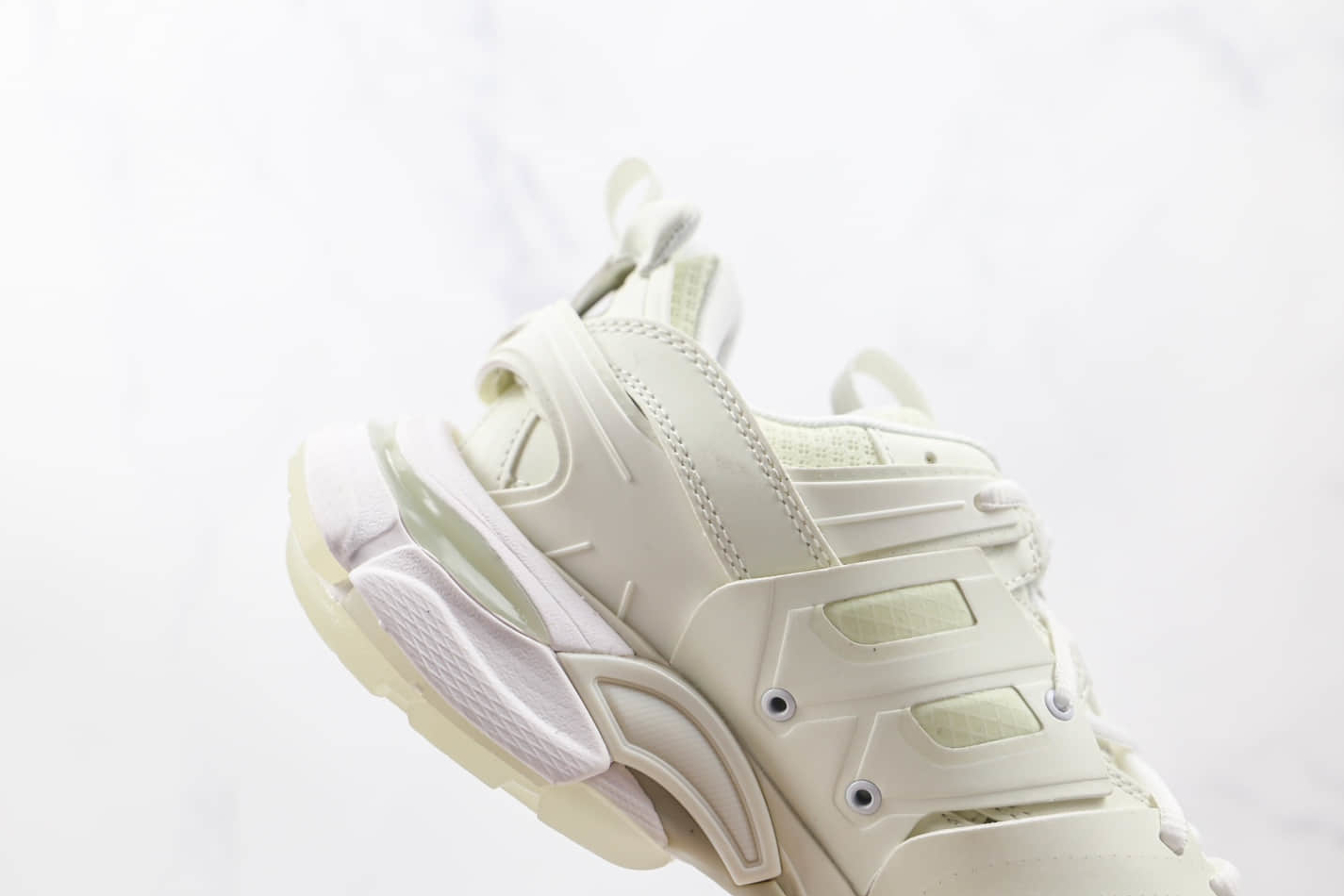 Balenciaga has equipped the Track Sneaker ‘Glow In The Dark’ with a highly functional sole. The rubber outsole provides excellent traction, ensuring stability on various surfaces. The midsole incorporates complex cushioning technology that offers unparalleled comfort and absorbs shocks to minimize fatigue during extended wear.