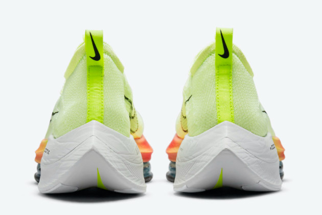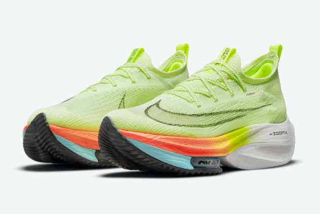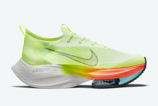 The Nike Air Zoom Alphafly NEXT% Barely Volt/Hyper Orange-Dynamic Turquoise-Black CI9925-700 is the ultimate running shoe for athletes seeking unparalleled speed and performance. Designed with the latest Nike technology, this shoe combines comfort, support, and speed to help you achieve your best running results.