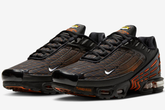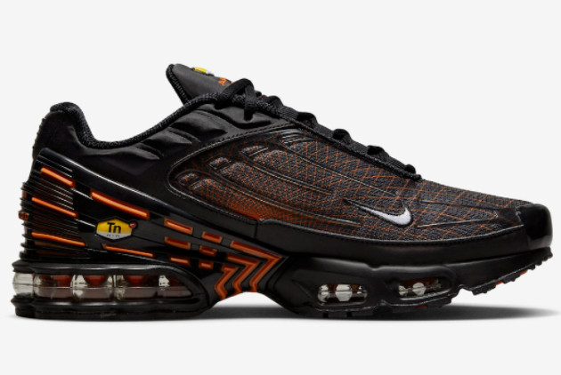 The Nike Air Max Plus 3 ‘Halloween’ Black Orange FB3352-001 features a unique design that combines the iconic Air Max cushioning with a modern twist. The upper is constructed with a combination of durable materials, providing both support and breathability. The shoe also features a lace-up closure for a secure fit, as well as a padded collar and tongue for added comfort. The black and orange colorway is accented by white detailing, giving the shoe a vibrant and eye-catching look. Additionally, the Nike branding on the tongue and heel adds a touch of authenticity.