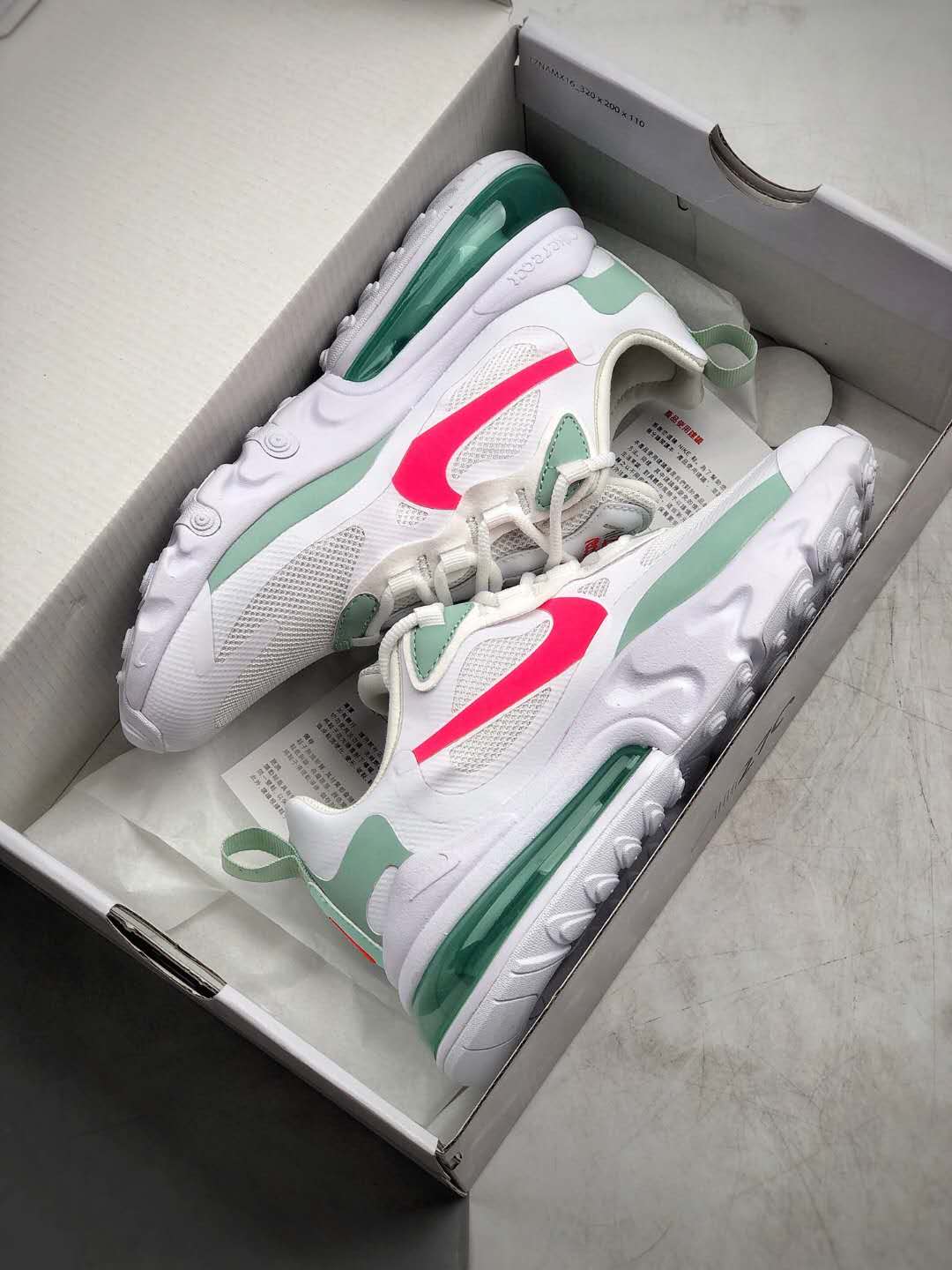 In summary, the Nike Air Max 270 React ‘White Pistachio Crimson’ CV3025-100 is a must-have sneaker for those who seek style, comfort, and performance in one package. Whether you’re hitting the streets or stepping into the gym, these shoes will provide you with the support and comfort you need to conquer your day.