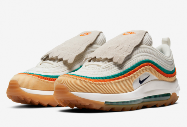 1. Supreme Comfort: The Nike Air Max 97 Golf Celestial Gold/Sail/Neptune Green/Obsidian CJ0563-200 is equipped with a full-length Air Max unit that offers exceptional cushioning and impact protection. This technology ensures a comfortable stride throughout your game, reducing fatigue and allowing you to focus on your swing.