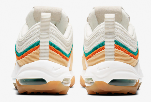 3. Excellent Traction: The outsole of the Nike Air Max 97 Golf Celestial Gold/Sail/Neptune Green/Obsidian CJ0563-200 is specifically designed for golfers. The rubber outsole features a unique traction pattern that provides excellent grip on various terrains, ensuring stability through every swing.