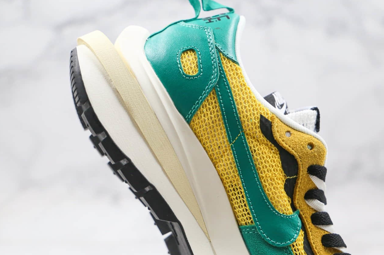 1. Unique Double Design: The Sacai x Nike Pegasus VaporFly SP features a distinct double design, where two sneakers are fused together. This creates a visually striking silhouette that encapsulates the essence of Sacai’s design aesthetic.