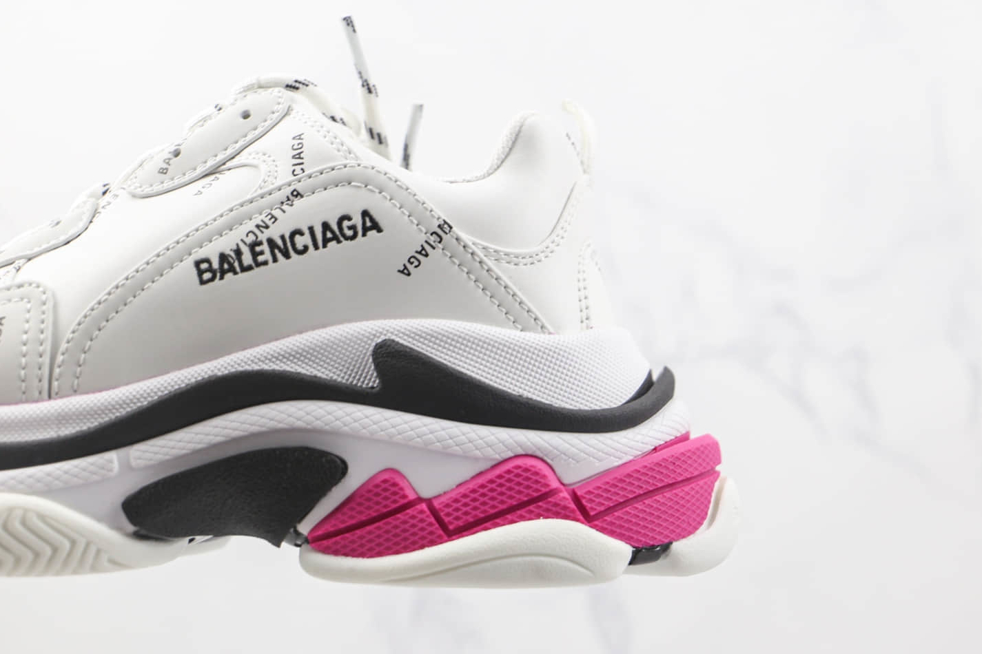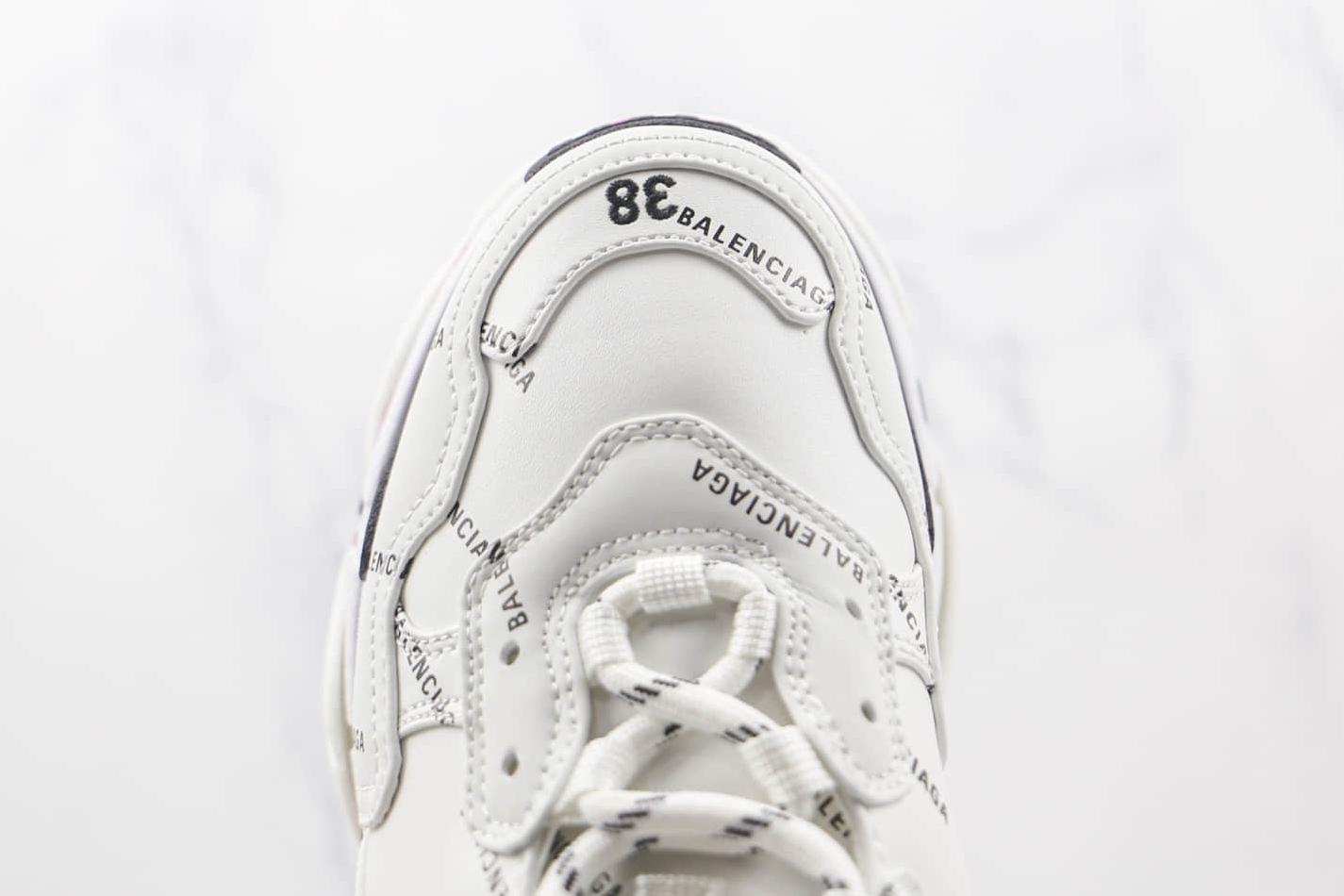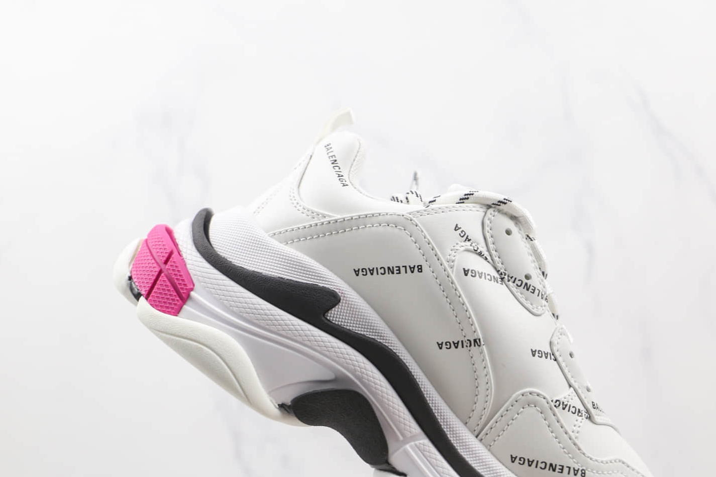 The Balenciaga Triple S Sneaker ‘Allover Logo White Pink’ offers a plethora of desirable features that set it apart from the rest. The most notable feature is the allover logo design, which adds an edgy and unique touch. Crafted with premium materials, these sneakers are built to last, ensuring durability and reliability. The chunky sole provides excellent support and stability, making them suitable for all-day wear. Additionally, the lace-up closure allows for a secure and adjustable fit, adapting to your individual needs.