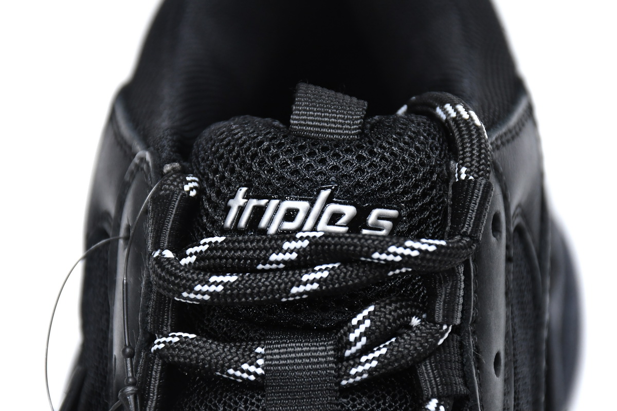 The Balenciaga Triple S Triple Black (2018 Reissue) (Pre-Distressed) 512176 W0901 1000 is available in various sizes and comes with the following specifications: