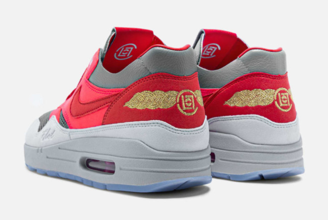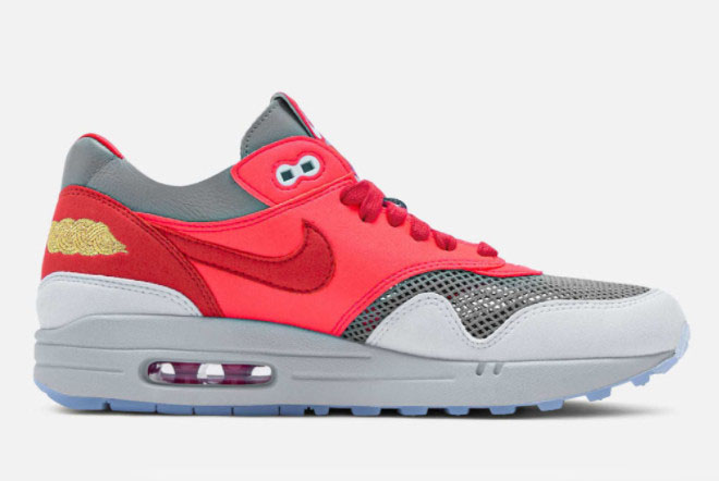 1. Eye-Catching Design: The CLOT x Nike Air Max 1 ‘K.O.D. Solar Red’ boasts a unique design that merges elements from both brands, resulting in a visually striking sneaker. The combination of the Solar Red, University Red, and Cool Grey hues creates a captivating contrast that demands attention.